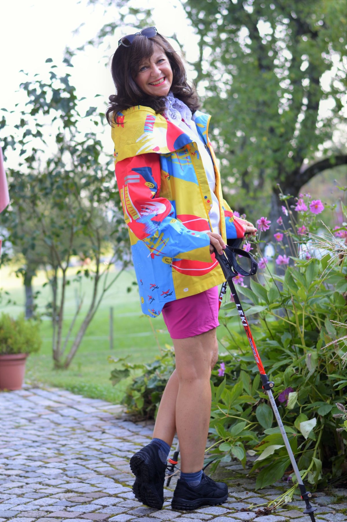 Die bunte Jacke liebe ich, mal etwas ganz anderes als immer nur dunkle Farben. Wind- und Wetterfest ist sie ausserdem, praktisch und leicht für den Rucksack.