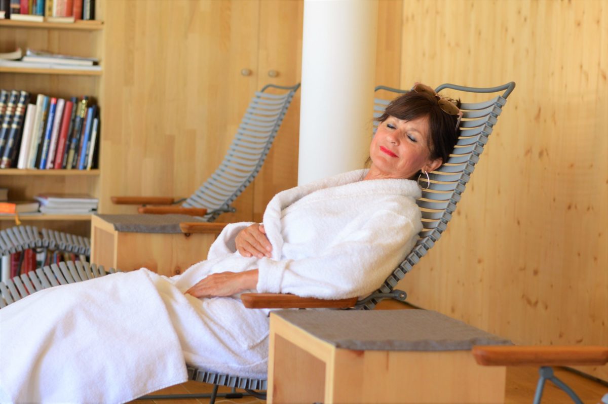 Im ATRIUM SPA erwartet den Gast Massage und Kosmetik, Fitnessraum und Workout, Teebar und Baum-Atrium, Panorama- und Biosauna, Sole Becken und die ruhige Sonnenterrasse. Der Sole Pool lädt zu einem wohltuenden Bad ein. Bei einer Temperatur von ungefähr 32 °C ist der Besuch des Sole Beckens nach einer ausgiebigen Bergtour genau meine Vorstellung von Entspannung pur. Anschließend lege ich mich auf die Sonnenterrasse und lasse meine müden Knochen etwas zur Ruhe kommen.