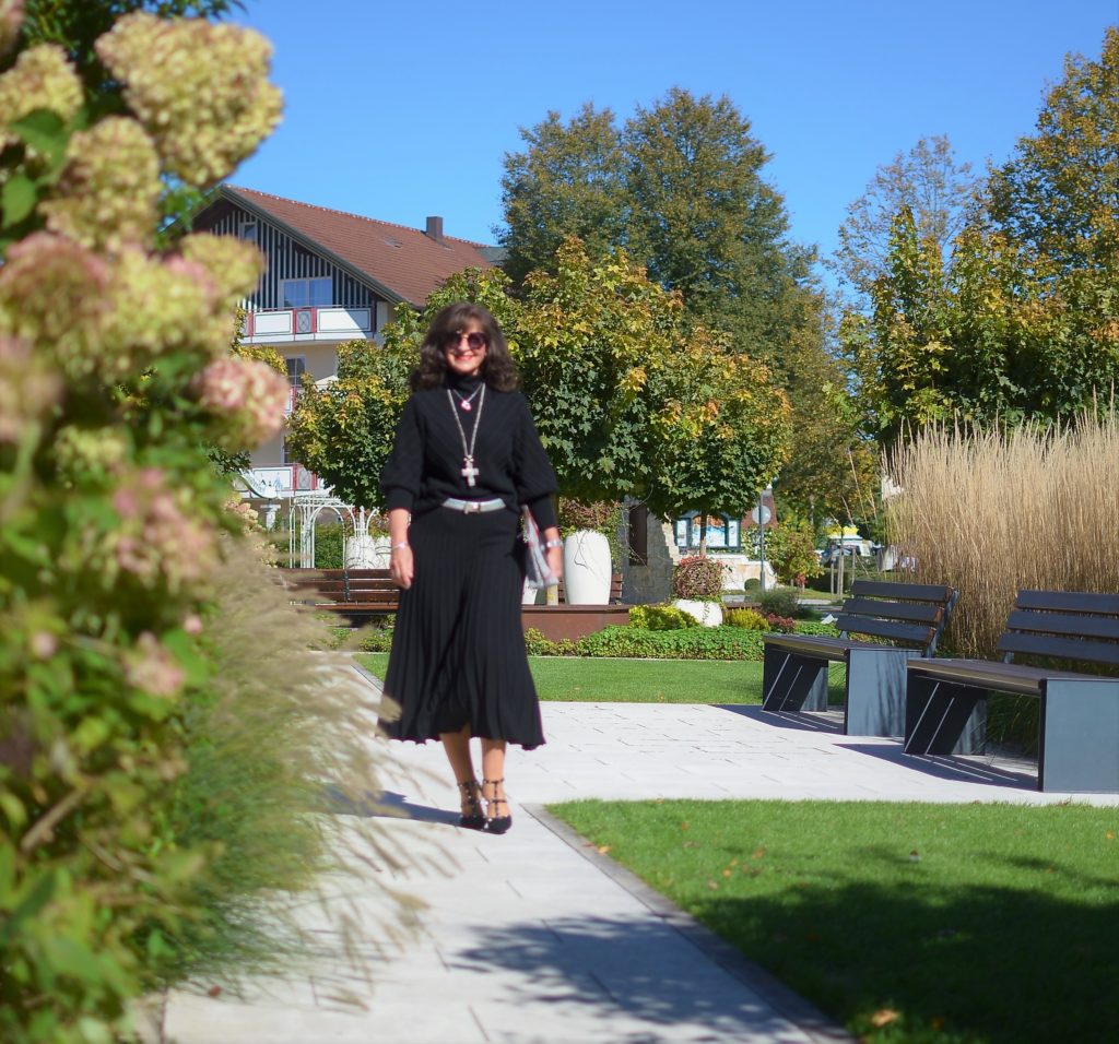 Schwarz steht Dir ja sehr gut. Ich fühle mich in der Farbe heute nicht mehr so wohl und wenn , dann in Kombination mit helleren Tönen.