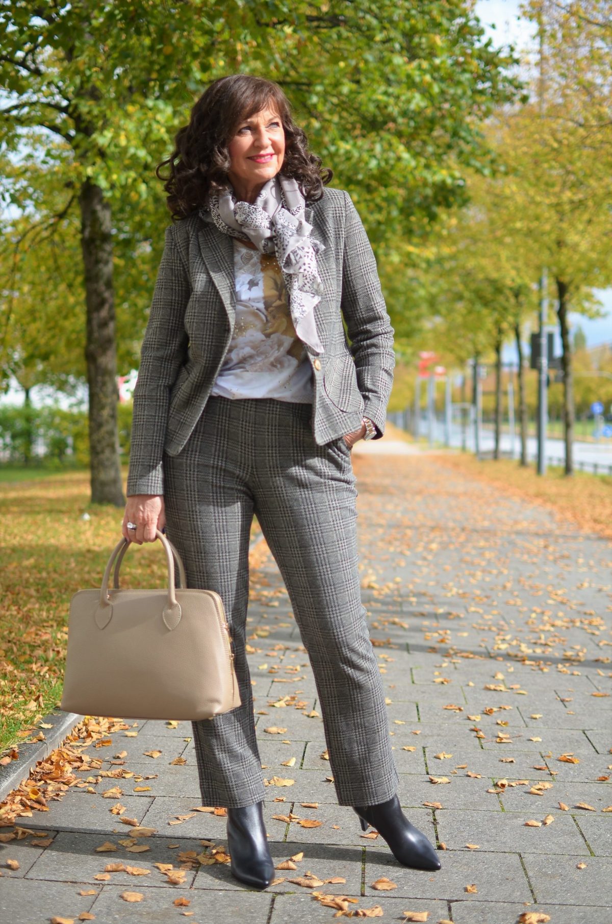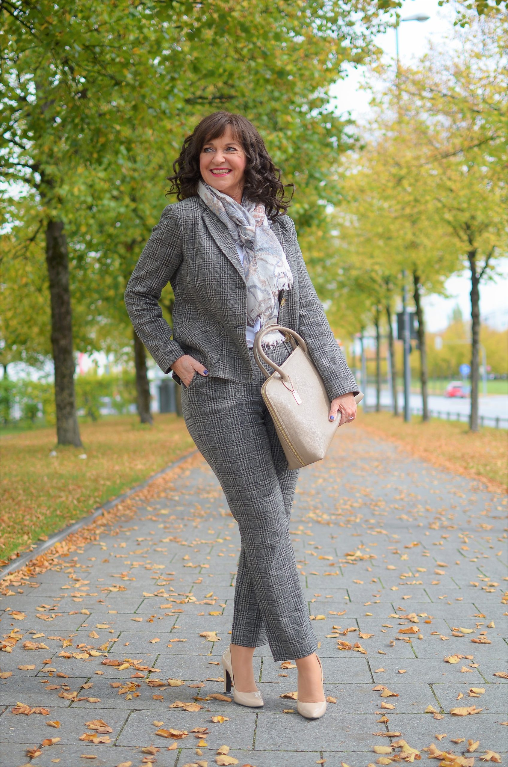 ja, die Farbigkeit des Hosenanzugs ist der Herbst pur. Deshalb habe ich einmal drei unterschiedliche Schuh-Modelle vorgestellt. So findet jede Lady ihren Lieblingsschuh. Und vor allem kann man damit sehen, wie ein Schuh ein Outfit verändert.