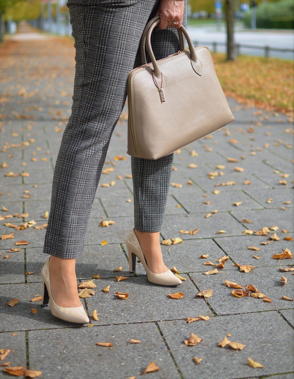 Ich bin großer Fan von schicken Pumps. Deshalb darf zum Hosenanzug die Kombination mit einem eleganten Pumps nicht fehlen. Ein Pumps in farbigem Kontrast würde sich ebenso für den karierten Hosenanzug eignen. Beachte dabei, dass Du die Farbigkeit in Deinem Look wiederholst. Sonst würde der Schuh zu stark dominieren.