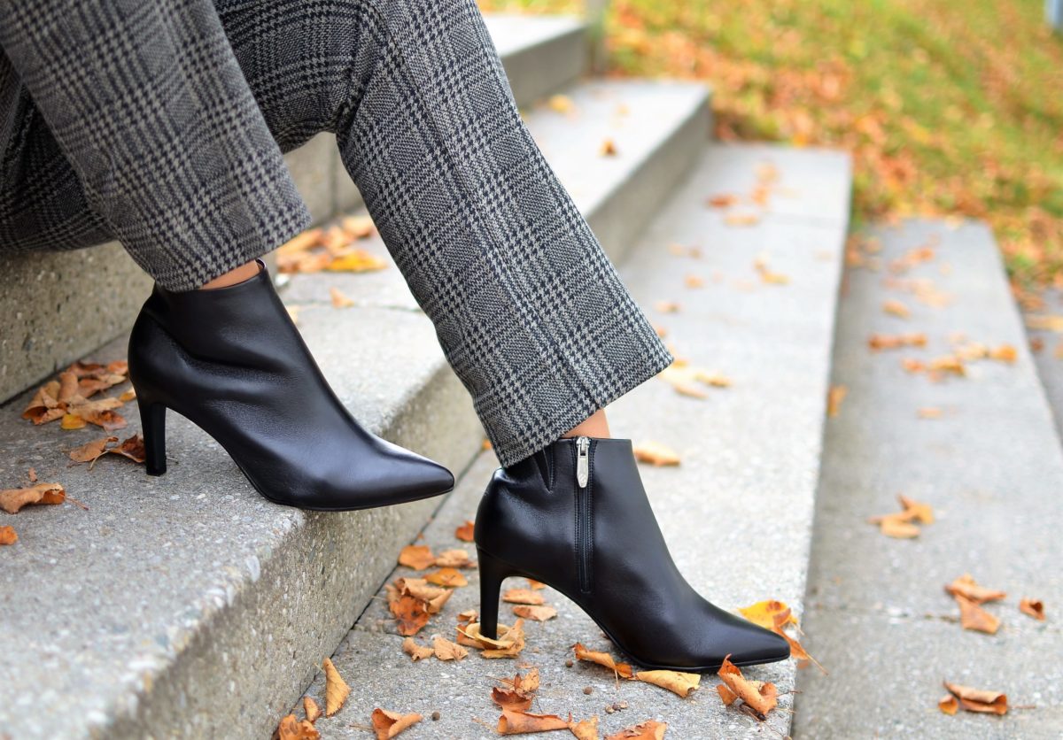 Im Herbst sind für mich schicke Stiefeletten eine wunderbare Ergänzung zu einem karierten Hosenanzug und ab und zu sogar zu einem Rock oder Kleid. Die edle Stiefelette in schwarz habe ich diese Woche schon einmal auf Instagram mit einem schicken Kleid mit Lederjacke von MONA gezeigt – HIER kannst Du Dir ein Bild davon machen.