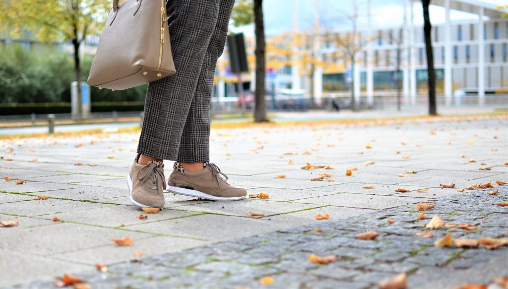 Für meinen sportiven Look und zur Personal Shopping Tour trage ich den Schnürschuh von MONA und einen kuscheligen Schal. Da bin ich flott unterwegs in der City. Viele Ladys können am besten mit flachen Schuhen laufen. Also, einfach mal einen schicken Sneaker ausprobieren.