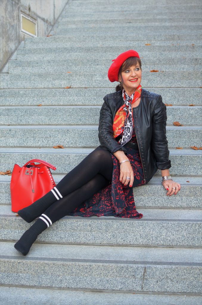 das Maxikleid steht dir so gut, wie immer perfekt geschminkt (beneidenswert), präsentierst du uns ganz tolle Looks. Die roten Accessoires peppen das Ganze nochmal so richtig auf. Die Lederjacken und das rote Barett sind eine ganz gelungene Inspiration. Du bringst mich immer wieder auf neue Ideen zum Nachstylen, danke dir dafür.