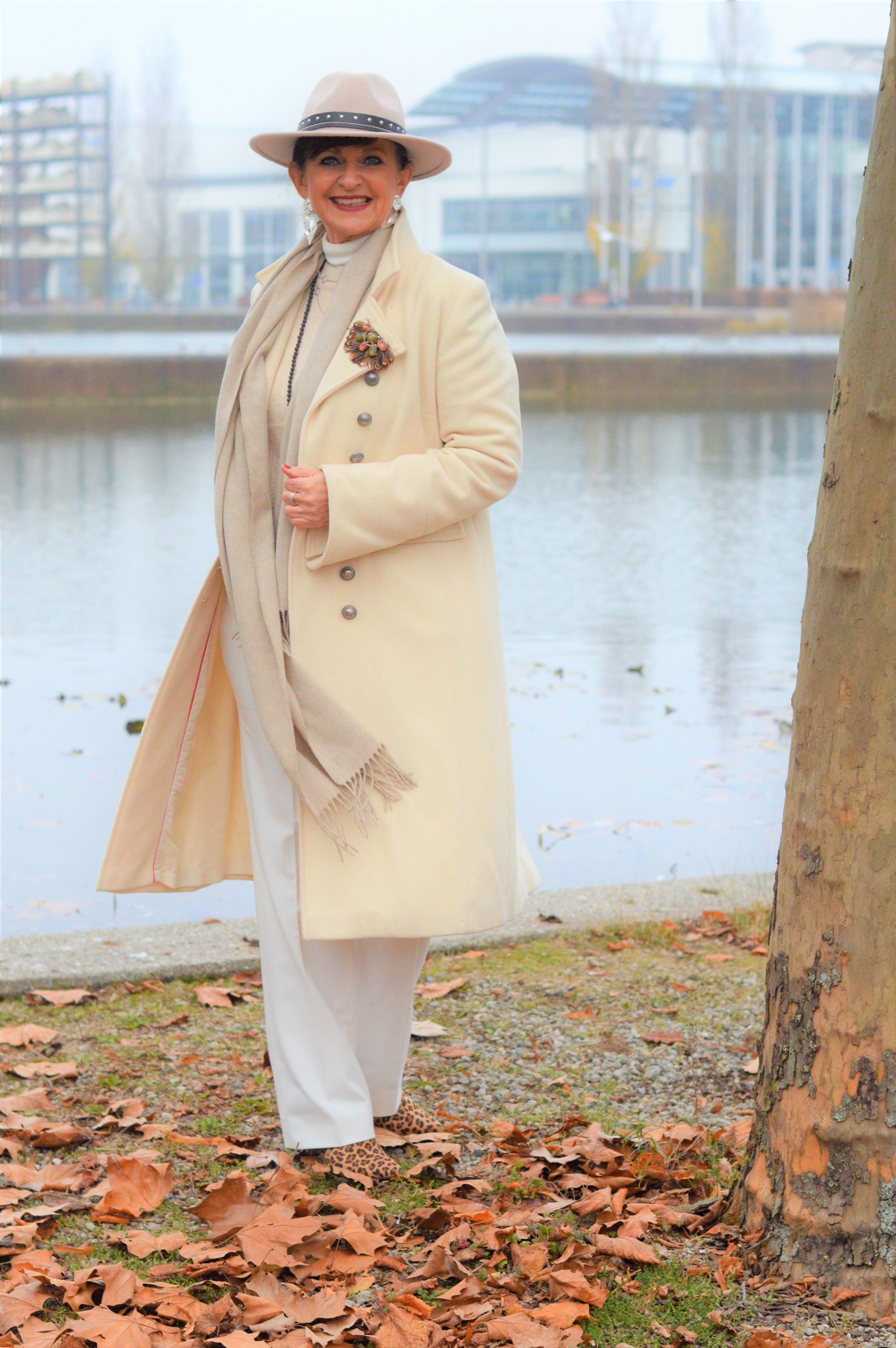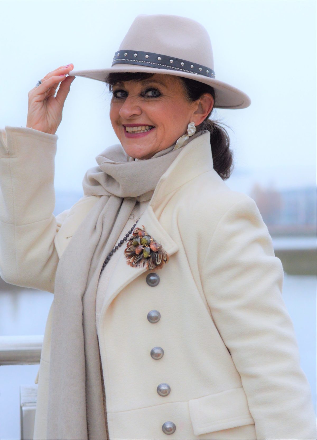 Wollweiß im Winter – immer wieder ein Hingucker. Wenn alle in dunklen Farben gekleidet sind, schlüpfe ich besonders gern in helle Nuancen. Warum sollten wir im Winter nur dunkel tragen?