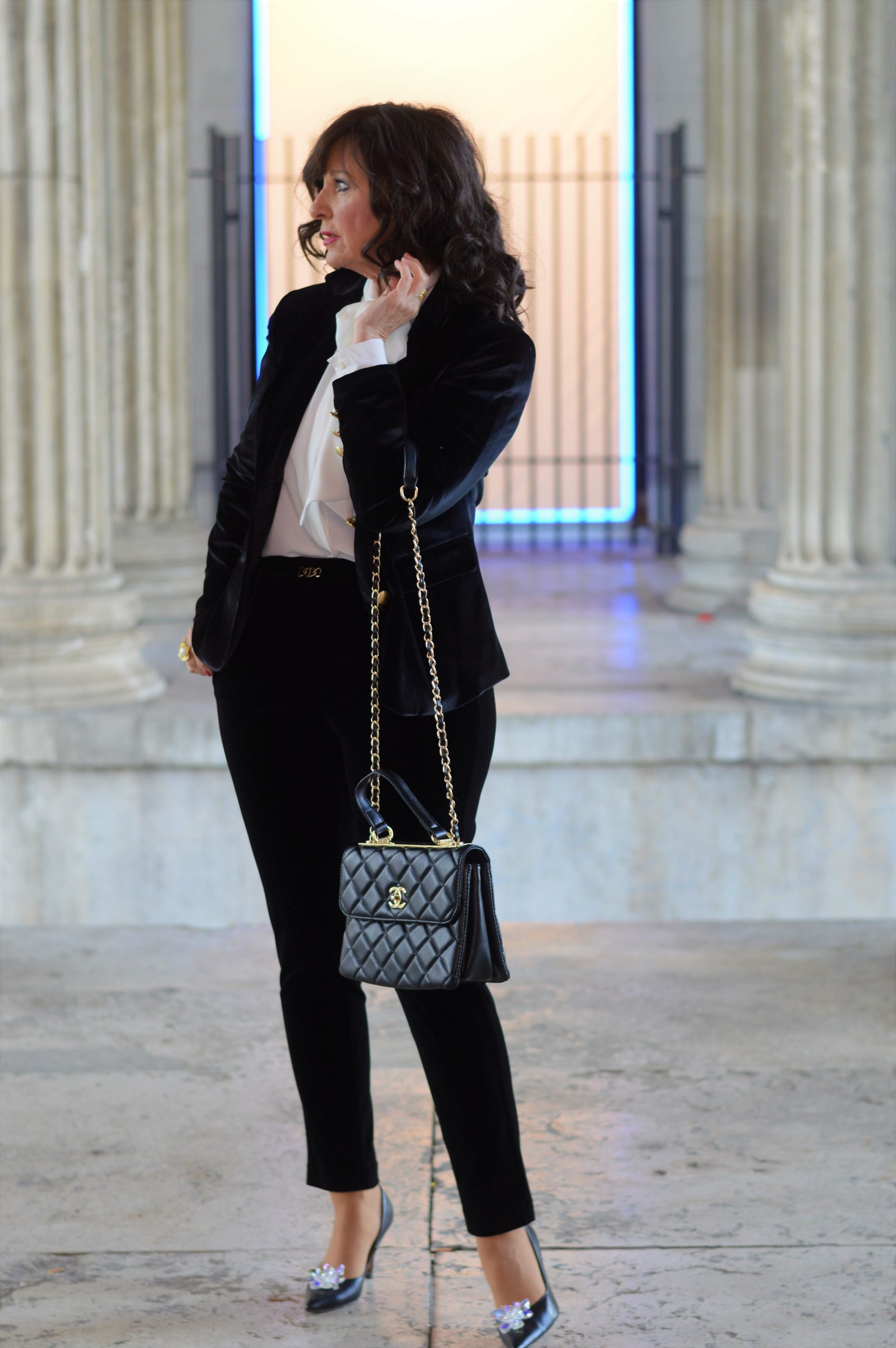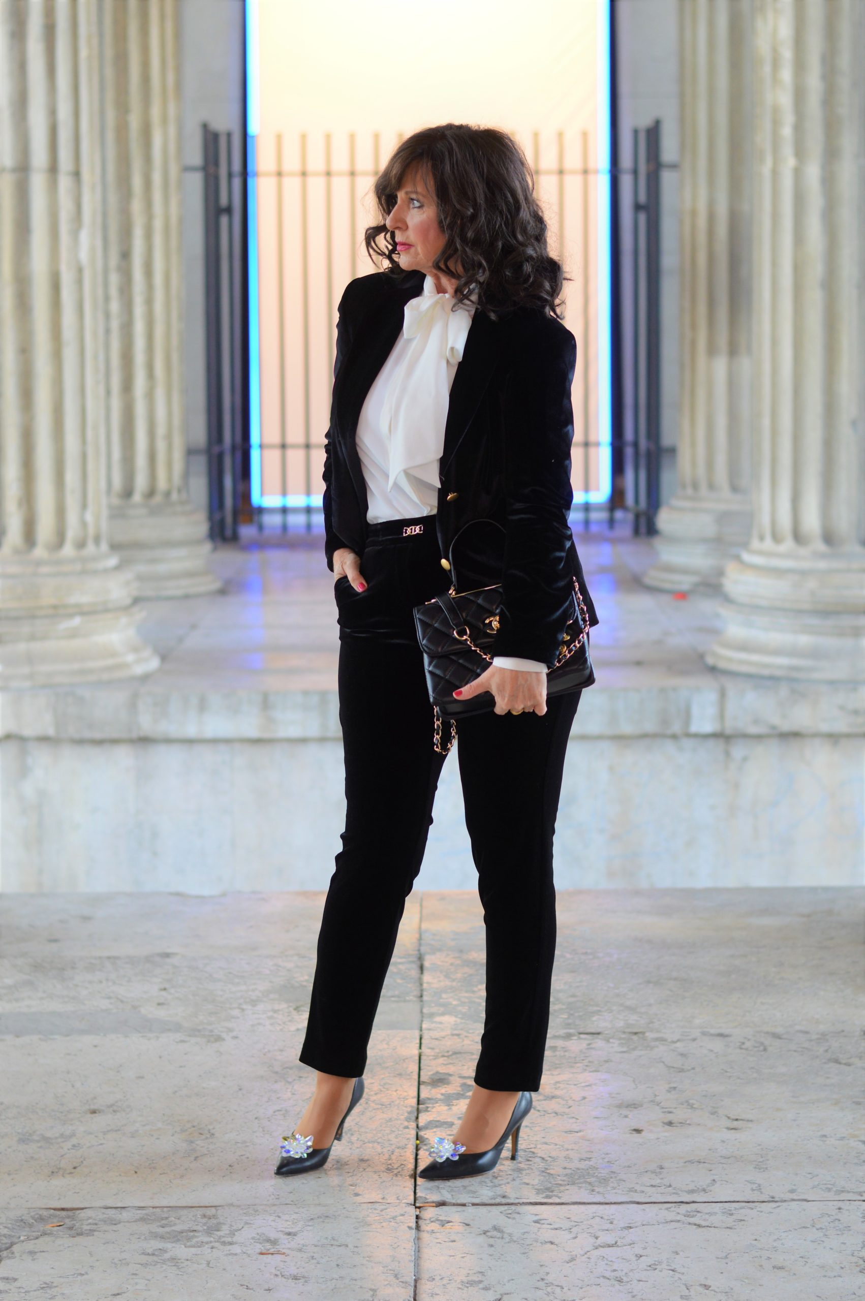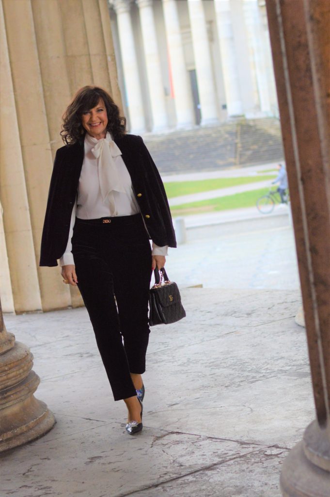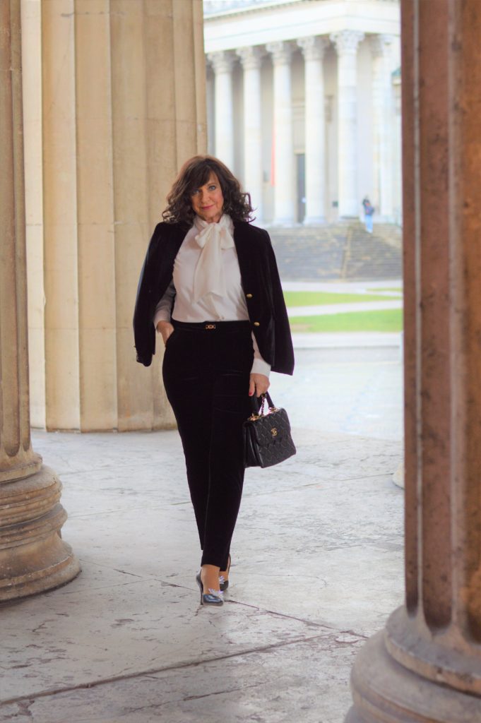 da hast Du völlig Recht, der Samtanzug wird bestimmt häufiger zu sehen sein, denn ich ziehe meine Outfits nicht nur für Blog und Fotos an, sondern auch im „echten Leben“.