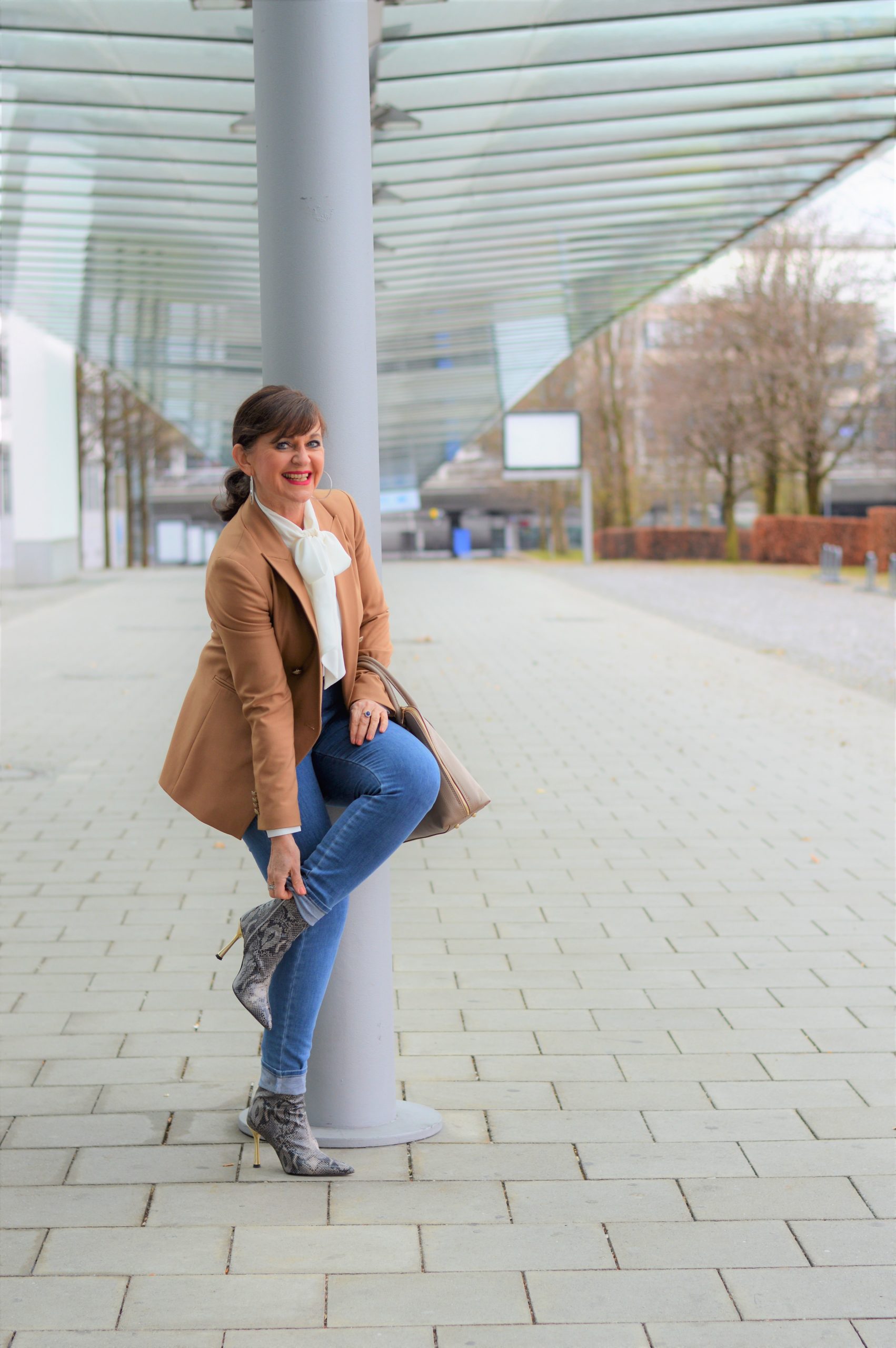 Ja, Bluse und Blazer – das hat immer Stil zur Jeans. Die Snake Print Stiefeletten sind wirklich ein Hingucker. Ich gehe auch ganz vorsichtig mit ihnen um, damit ich lange Freude daran habe :-).