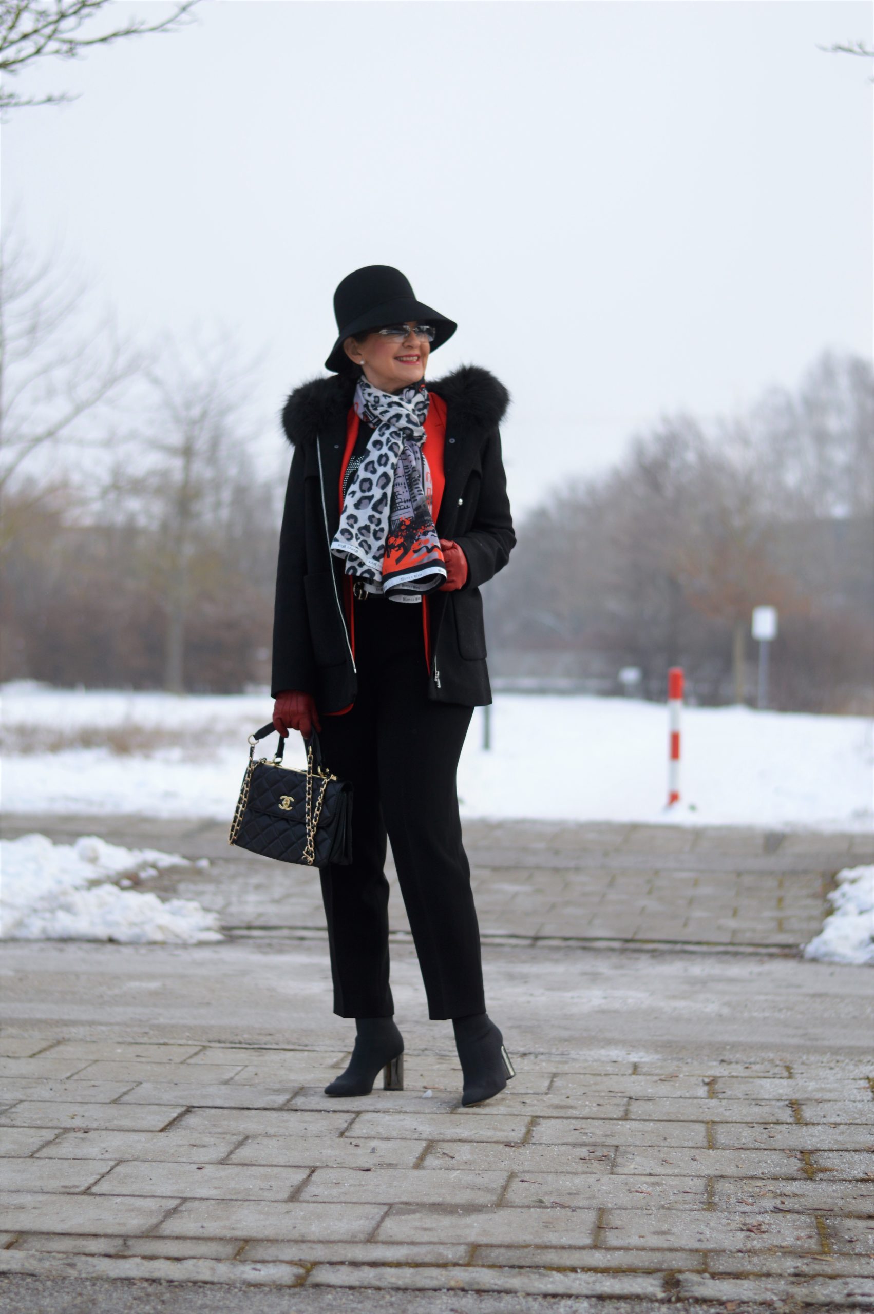 Meine Lieblingsfarben im Winter sind schwarz, grau, beige, Rost und khaki. Dazu gesellen sich Muster wie Leo, Snake oder Versacestyle. Ich nehme mir bunte Farbe immer wieder vor, fühle mich aber in meinen Farben aber wohl und sicher.
