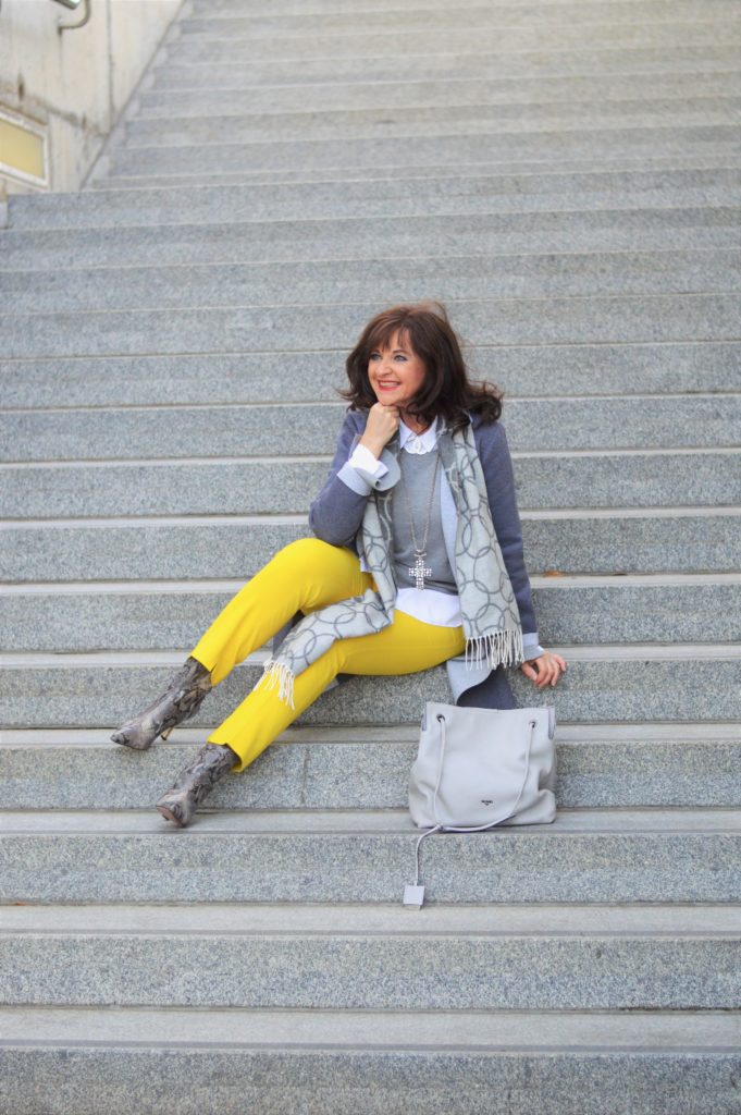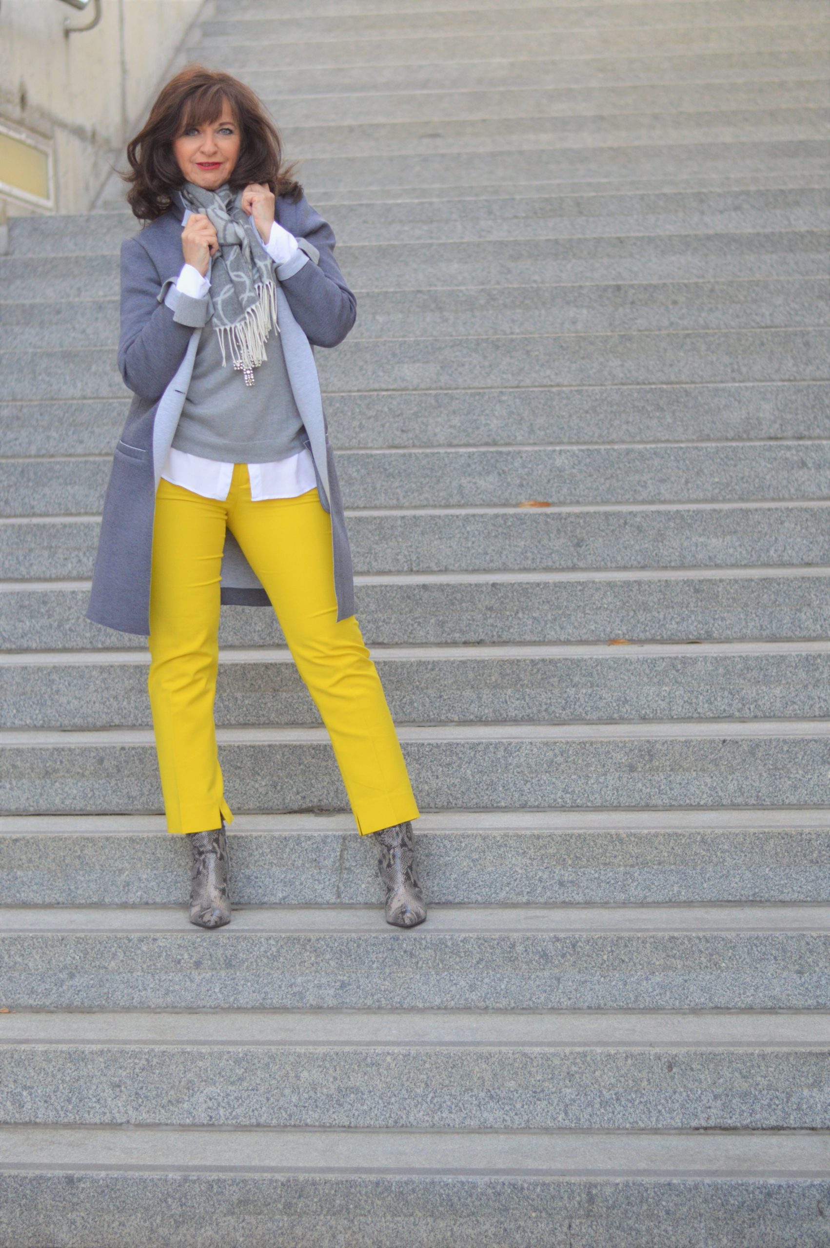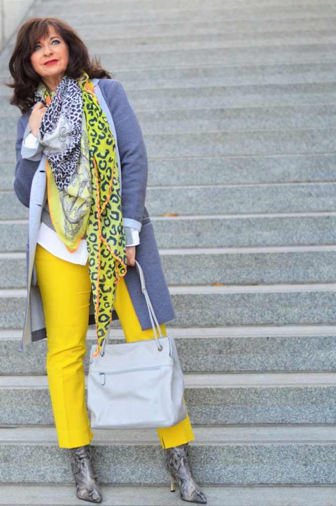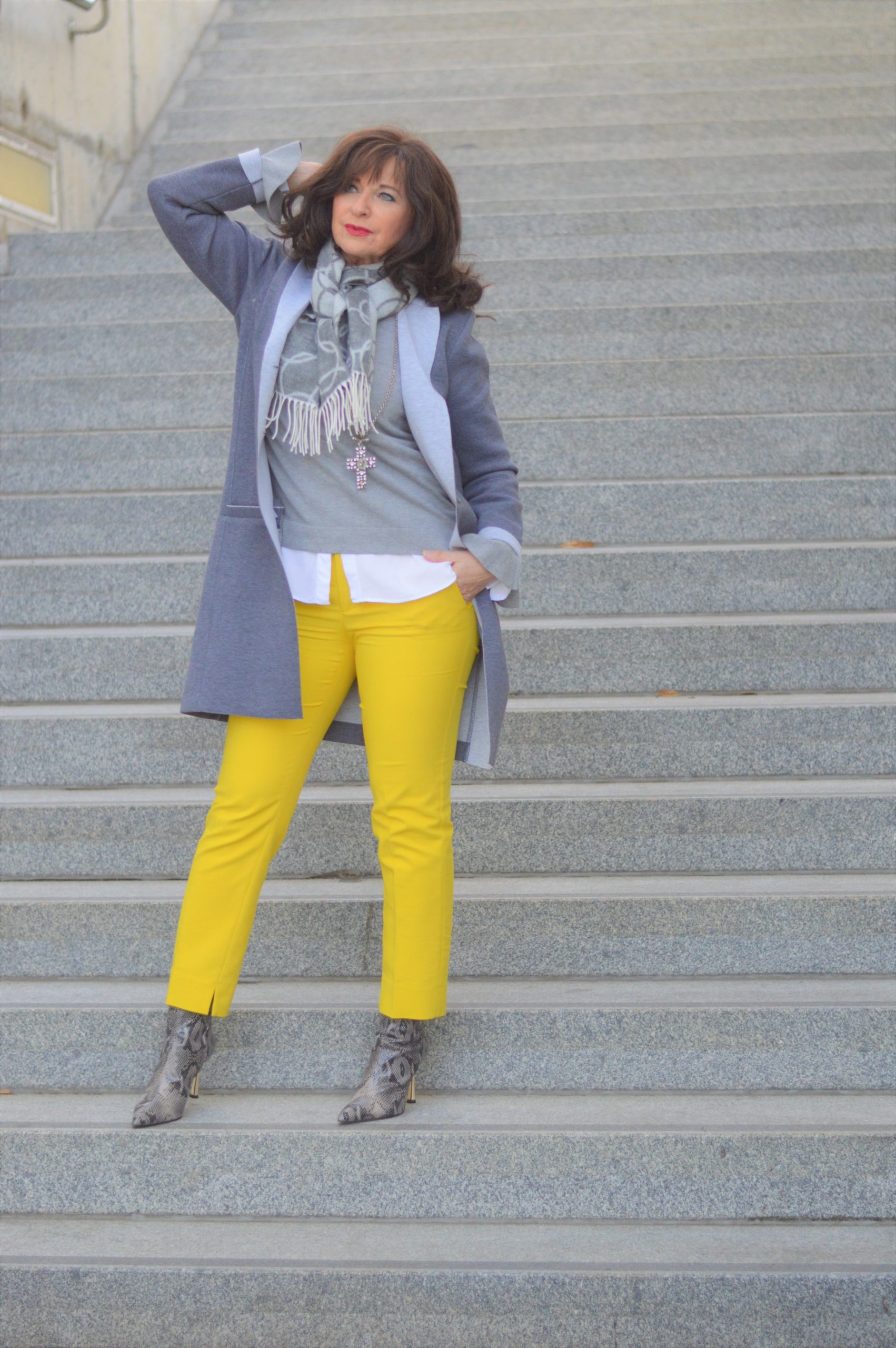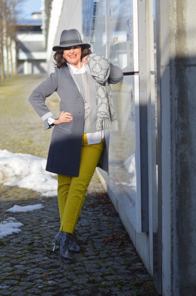 Wären beide Farben nicht zum Trend „aufgestiegen“, ich hätte beides nicht miteinander kombiniert. Ich trage graue Farbnuancen sehr gerne. Seit letztem Jahr habe ich mich für Gelb begeistern können. Beides zusammen ist eine ganz neue Interpretation von Farbigkeit. Und ich muss gestehen, es gefällt mir ganz gut, wie sich beide in Kombination präsentieren.