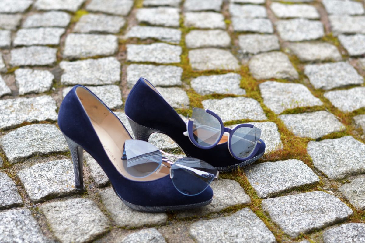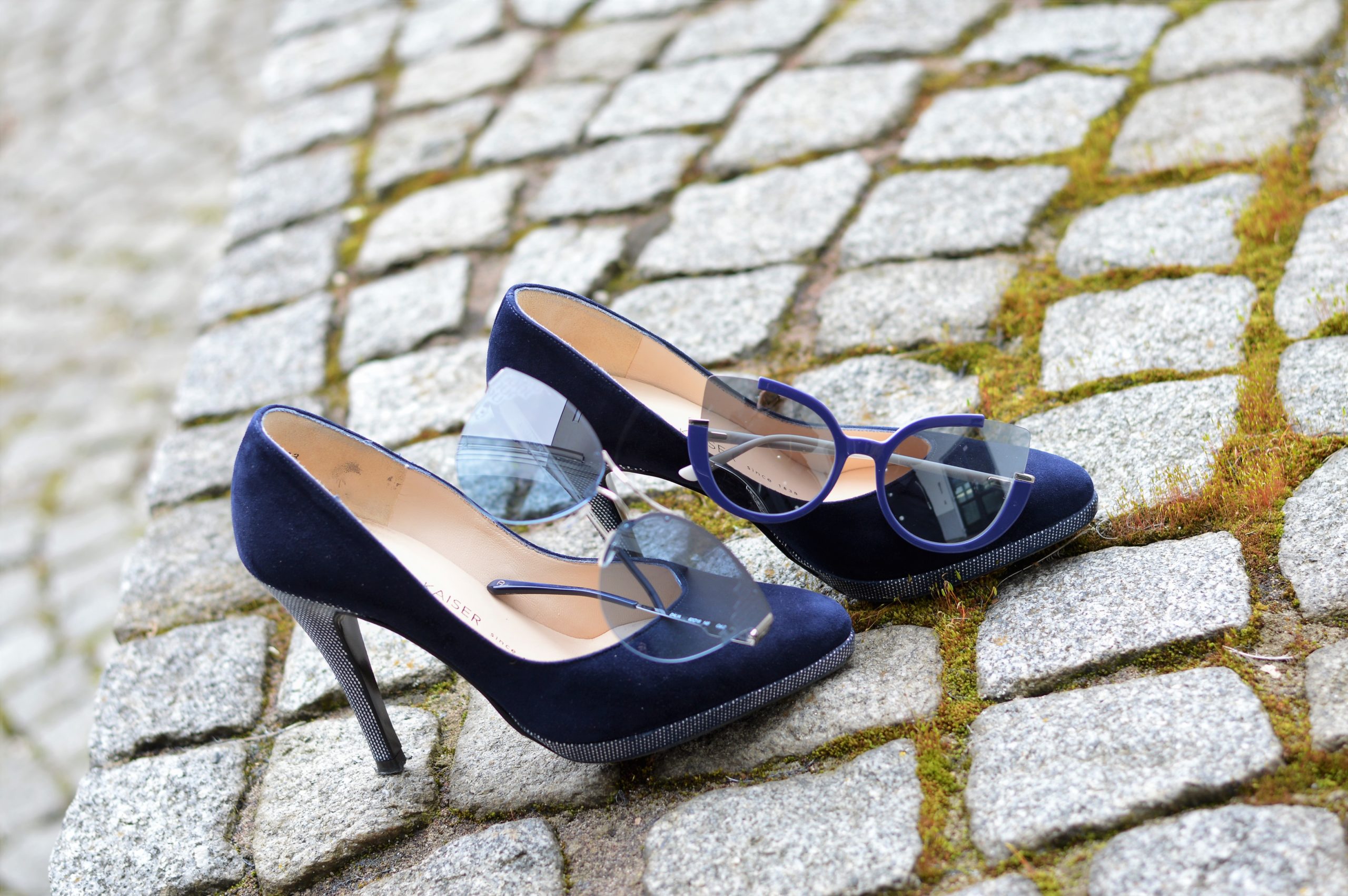 Als ich mir die Hose ausgesucht habe, ist mir sofort meine grüne Seidenbluse in den Kopf gekommen. Beide harmonieren ideal zusammen, auch wenn die Schluppenbluse einen seidigen Glanz hat. Darüber trage ich einen Business Blazer in dunkelblau. Die passenden Highheels dürfen bei mir nicht fehlen.