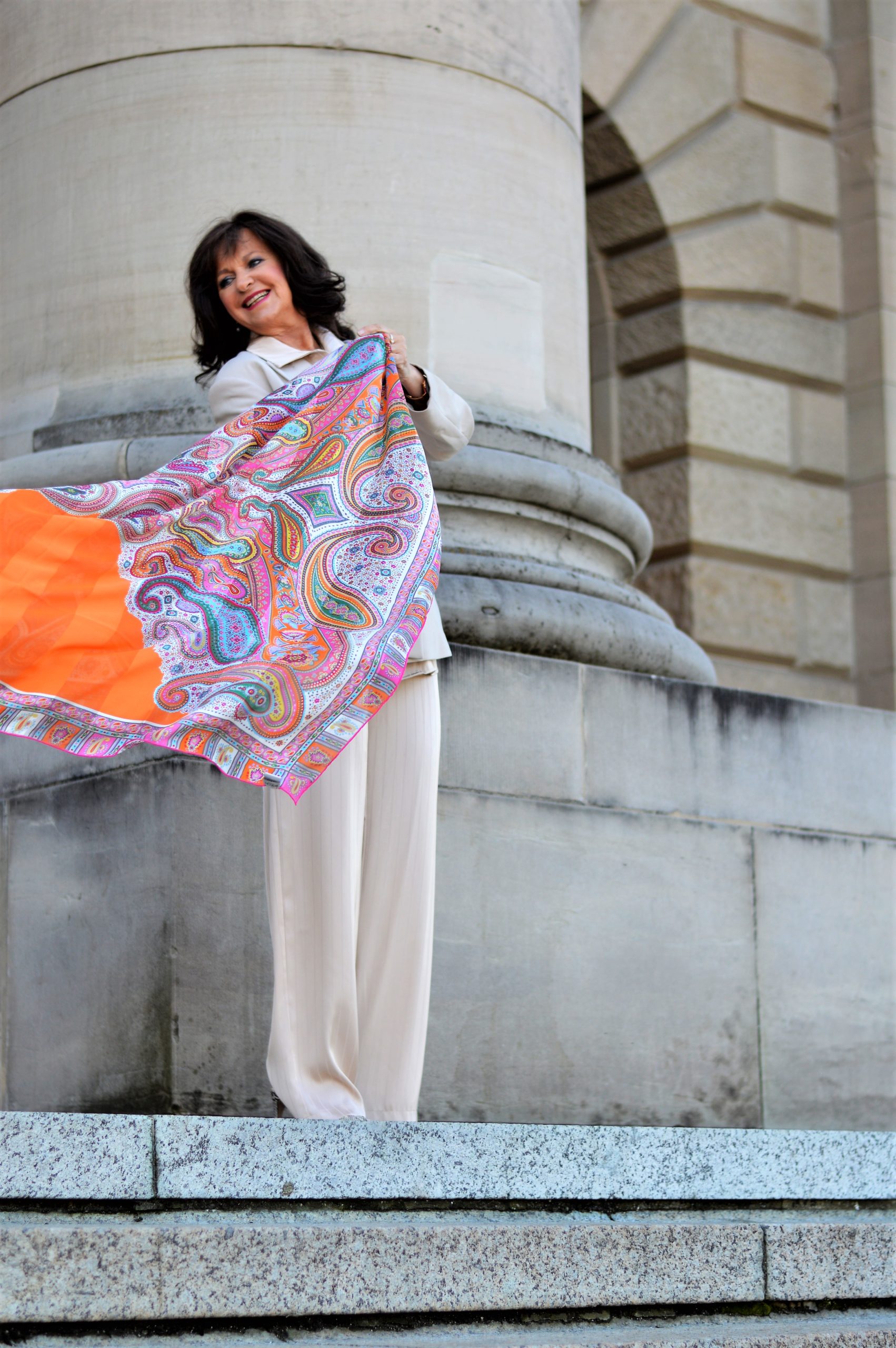 Viele von euch wissen, dass ich dieses Accessoire in vielen Looks als besonderen Hingucker mit kombiniere. Nicht erst seit Designer Tücher für sich entdeckt haben, trage ich diese zu vielen Anlässen. Bereits in meinen ersten Berufsjahren habe ich mir edle Seidentücher geleistet. Da ich schon als Kind so erzogen wurde, dass ich mir qualitativ hochwertige Kleidung kaufen solle, habe ich bei ROECKL meine ersten Tücher und edlen Handschuhe erstanden. Ja, ja – lange ist es her und meine „Liebe“ zum Geschäft ROECKL, München, wurde mir quasi in die Wiege gelegt.