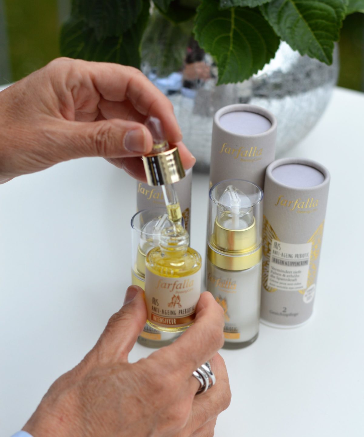 Die Haut erlebt eine ständige Metamorphose. Die Haut ist nicht jeden Tag gleich, mal sieht sie frisch und rosig aus. An einem anderen Tag schauen wir in den Spiegel und sehen mehr Fältchen als jemals zuvor. Mit dem Eintritt in die Menopause wird die Haut durch das Absinken des Östrogenspiegels trockener und die frühere Spannkraft lässt nach. Ab und an kommen Pigmentflecken dazu. Die Naturkosmetik hat viele Wirkstoffe, um auf milde Weise zu helfen. Deshalb hat FARFALLA die neue IRIS Anti-Ageing Linie konzipiert, die eine Tages- und Nachtcreme sowie bei Bedarf eine Intensivkur beinhaltet.