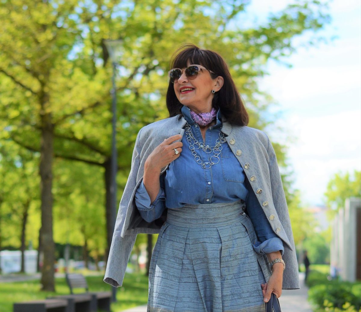 5. OUTFIT IDEE – Jeanshemd und Rock – Ton-in-Ton funktioniert immer