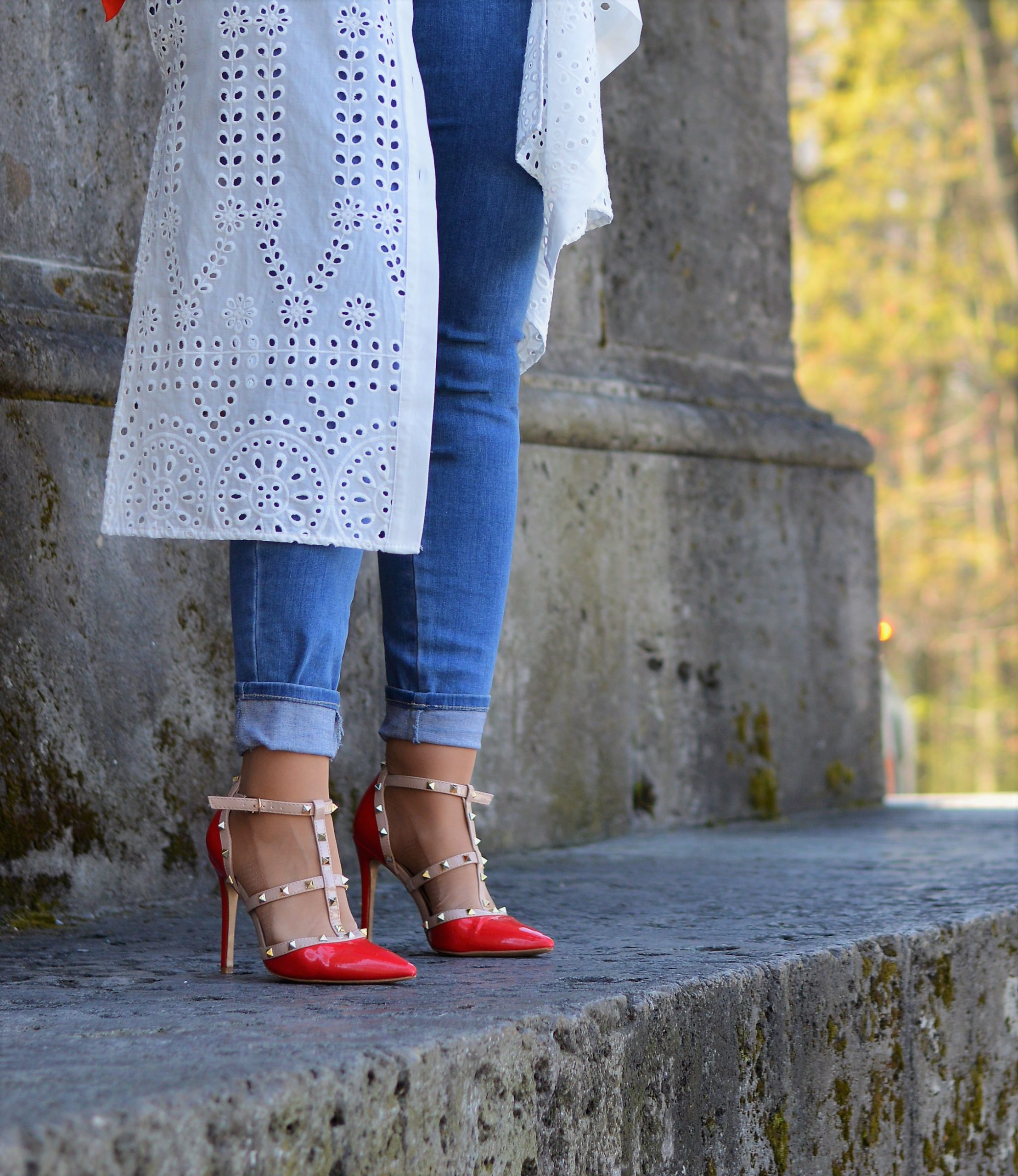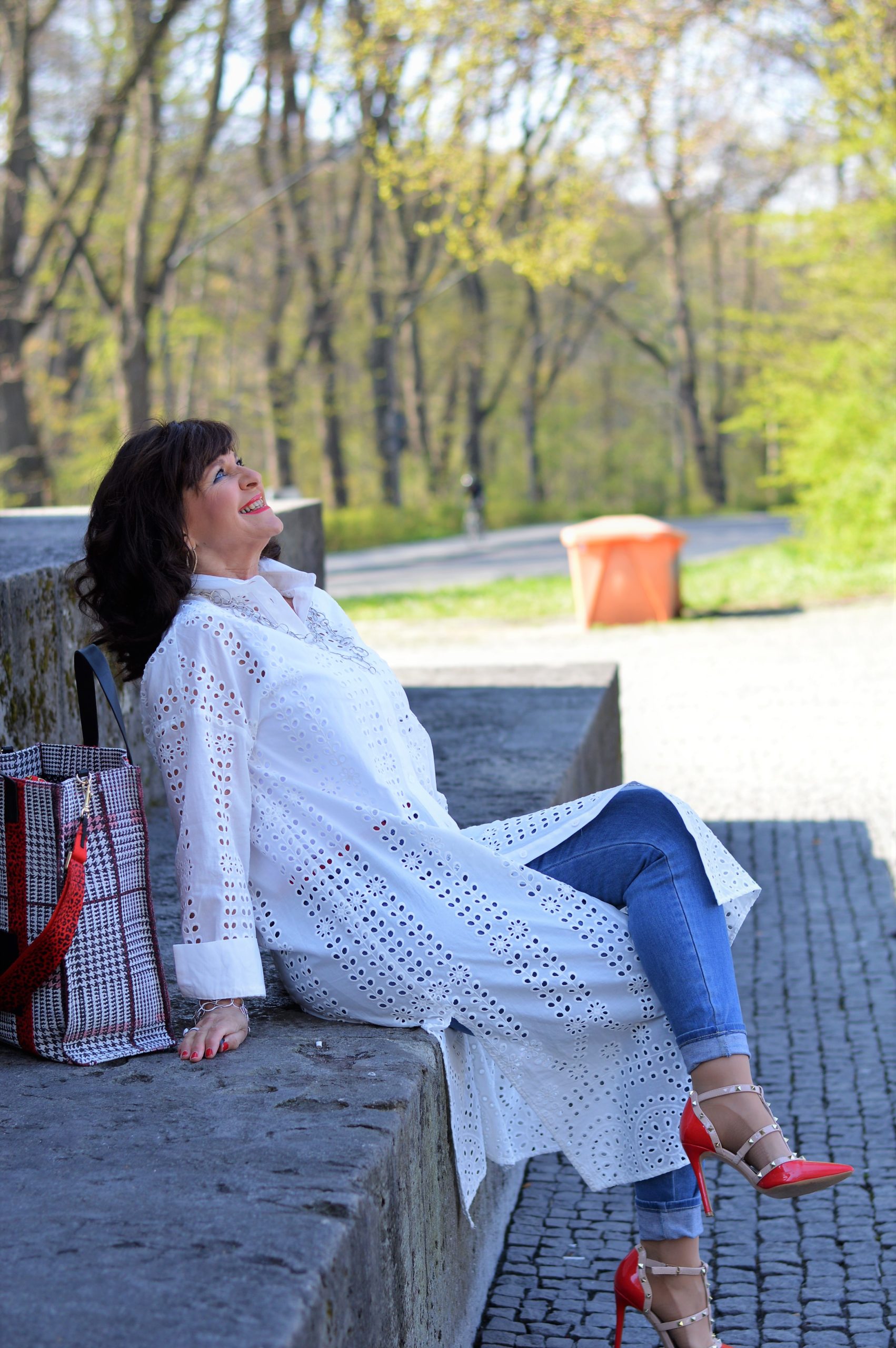 Casual schick – mit Jeans und weißer Longbluse gelingt das ganz bestimmt. Die roten Highheels ziehe ich ganz bestimmt zum Einkaufen beim Bäcker an. Da gibt es bestimmt den ein oder anderen verstohlenen Blick, wenn alle anderen in Flip-Flops oder alten Sneakers in der Schlange anstehen.