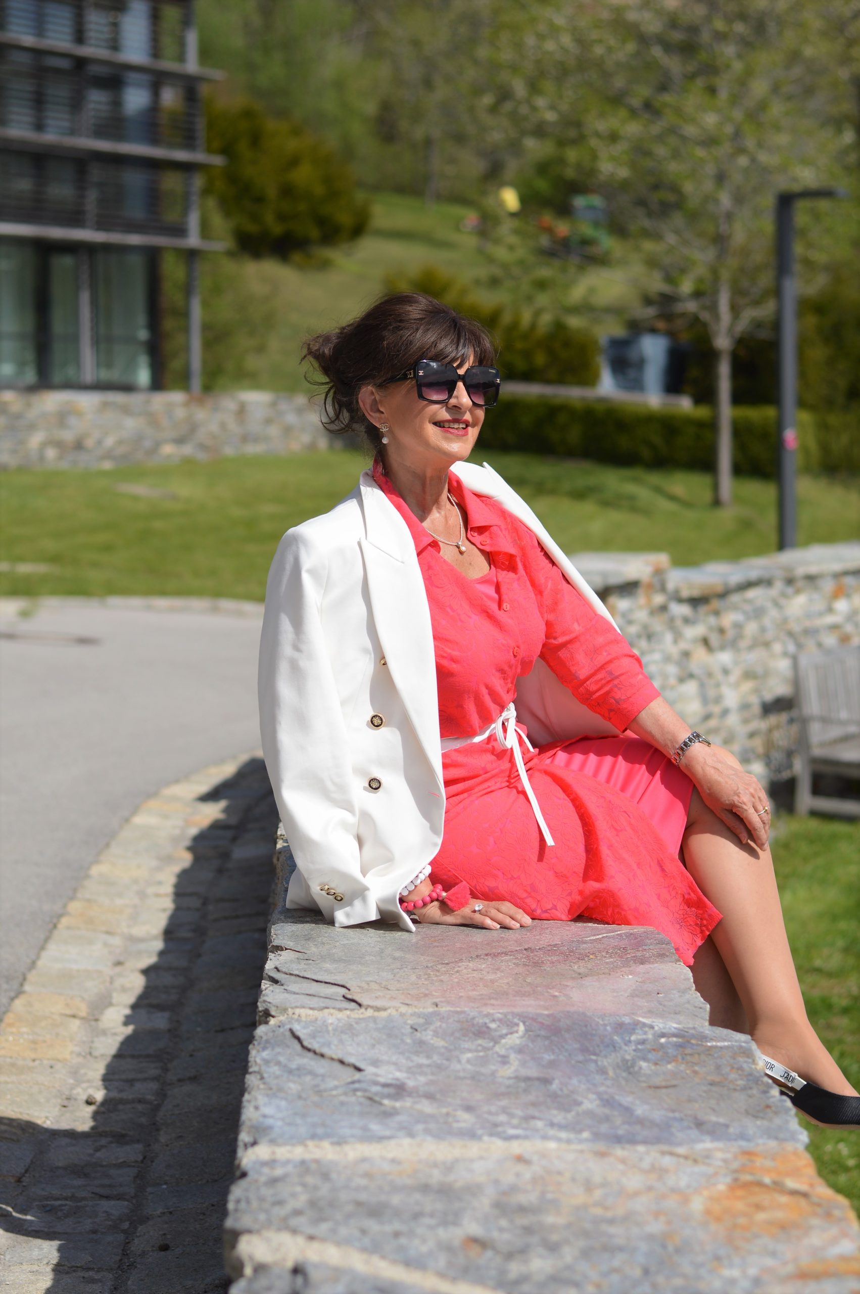 mein Favorit in dieser Woche ist das rote Hemdblusenkleid mit dem weißen Blazer, macht gute Laune und ist einfach chic !!