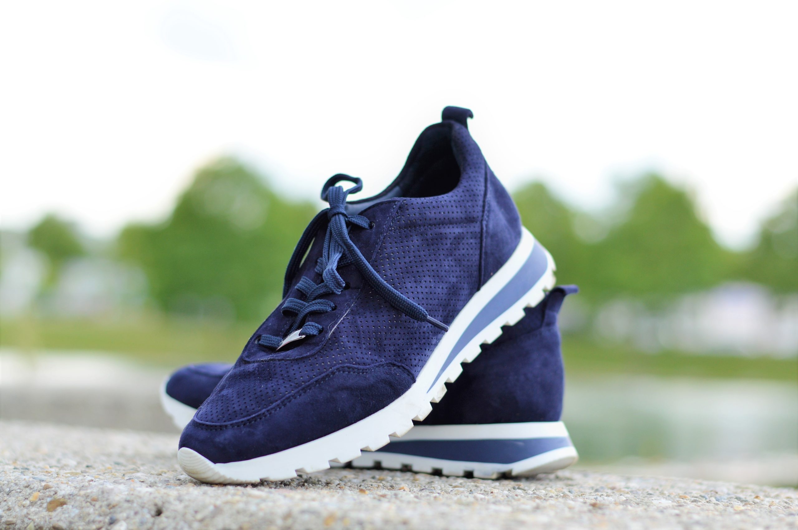 Der dunkelblaue Sneaker ist wie ein Hausschuh, so bequem und leicht. Schrille Sneaker sind überhaupt nicht mein Thema – die trage ich nicht. Deshalb haben mir die dunkelblauen Leder-Sneaker so gut gefallen, als ich sie zum ersten Mal gesehen habe :-). Vielleicht nochmals ein Versuch wert.