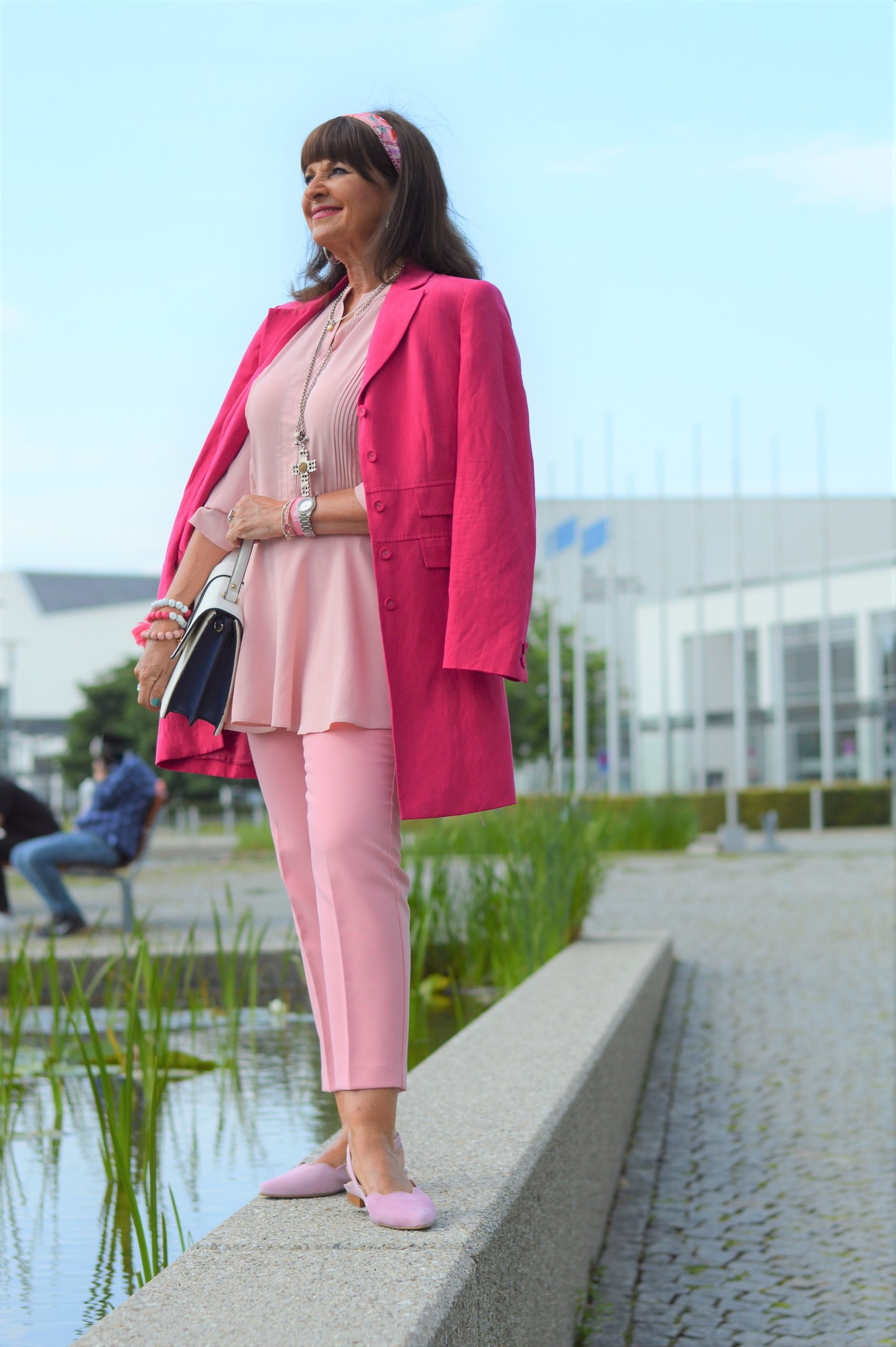 Sehr schönes Rosa in Kleidung! Ich habe immer geglaubt, dass diese Farbe in unserem Alter verboten ist! Aber du zeigst uns mal wieder, dass pinke Kleidung sehr harmonisch und elegant sein kann! Herzlichen Dank!! Ich werde auf jeden Fall rosa Kleidung kaufen, um auch elegant auszusehen. Alles Gute und kreative Ideen!