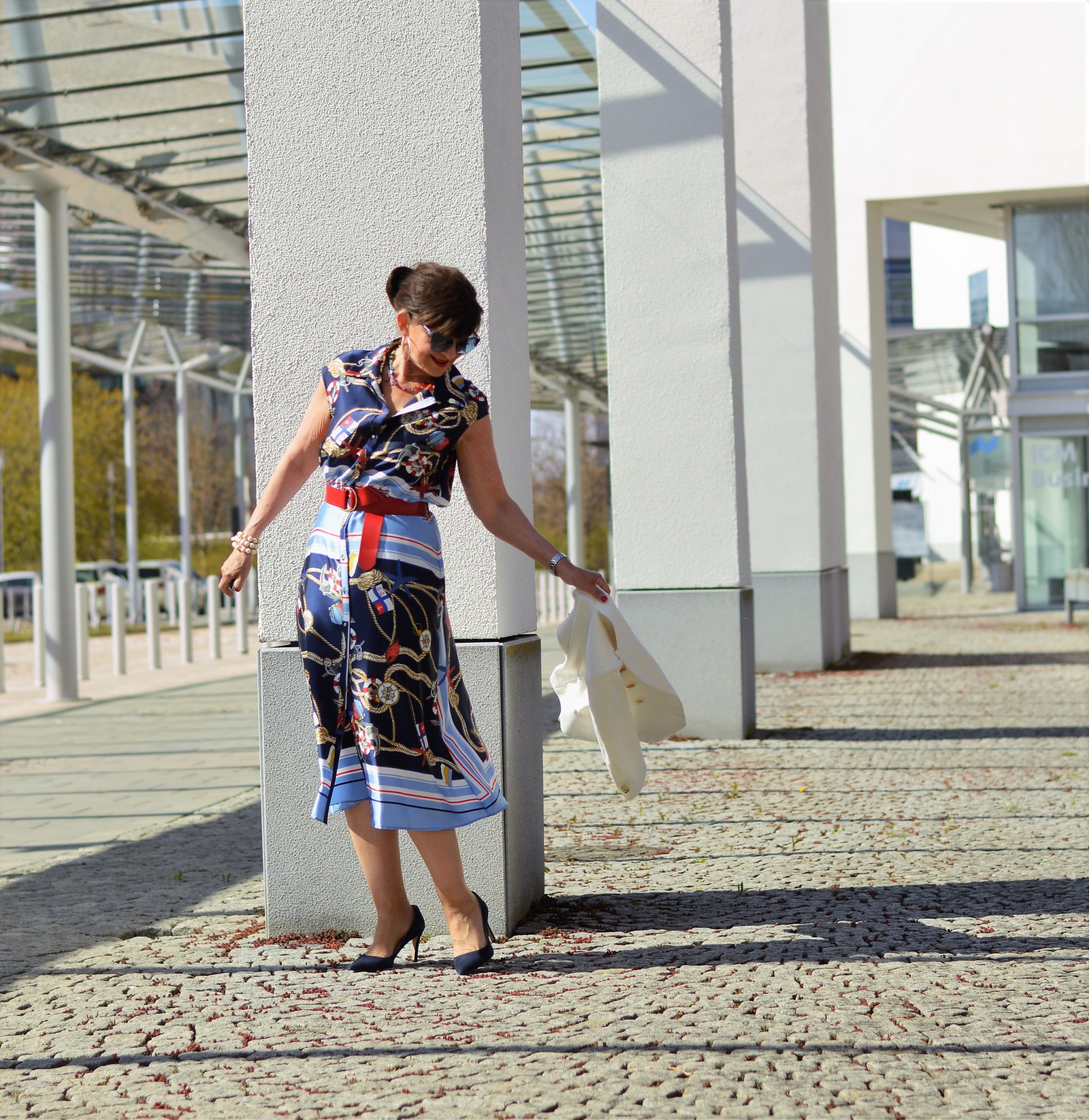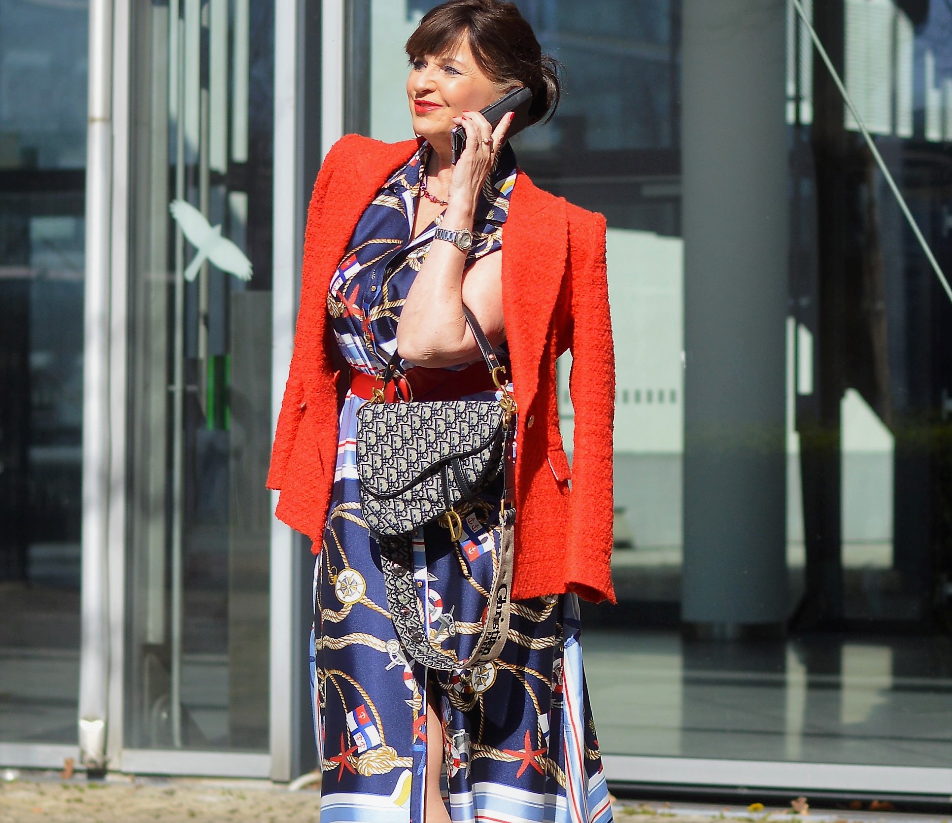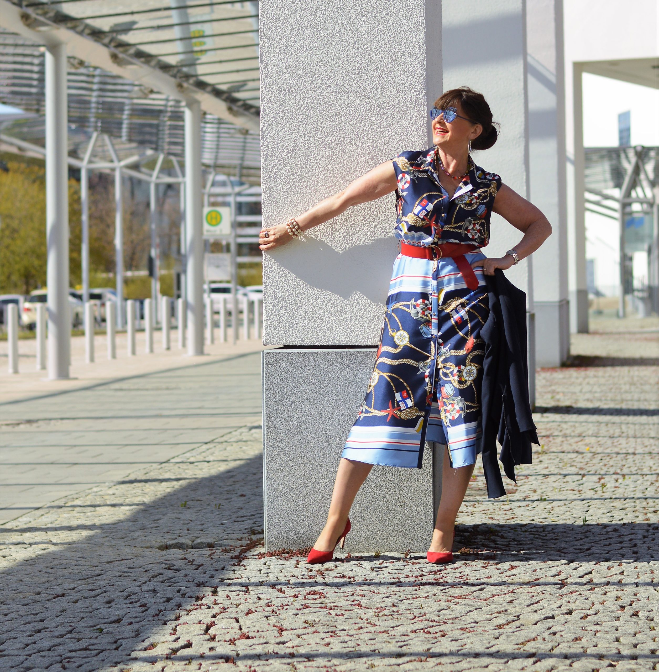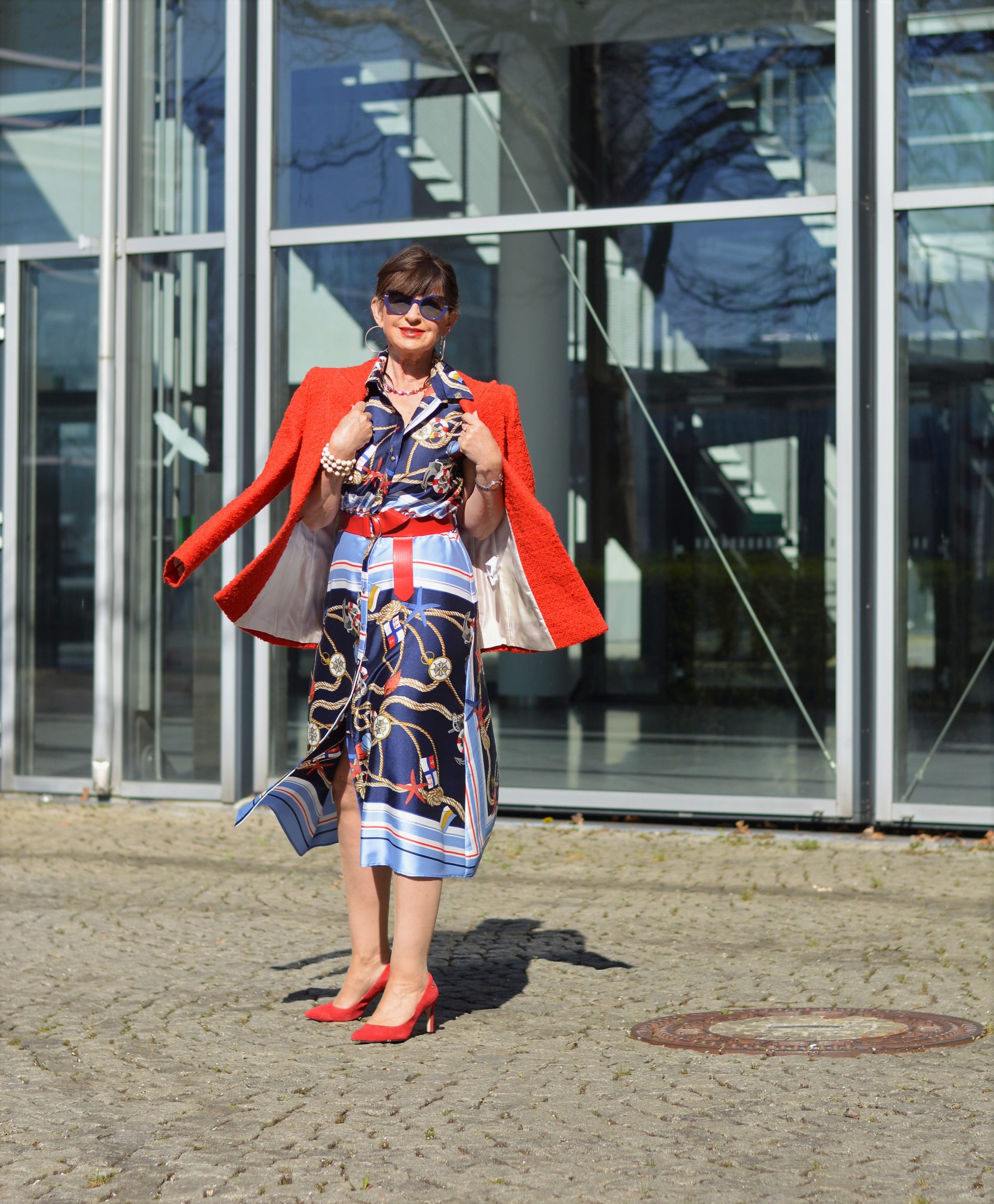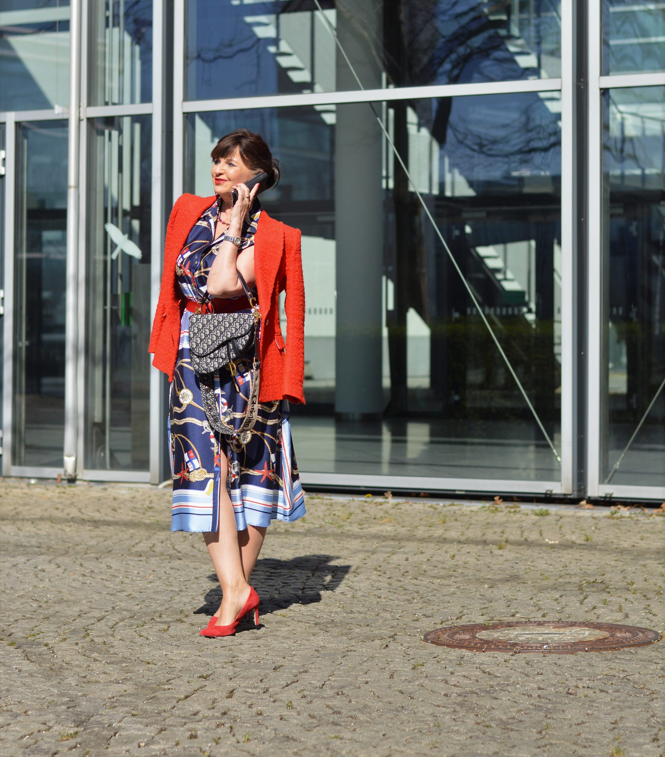 Liebe Martina, das Kleid steht Dir phantastisch. Der rote Blazer und die roten Accessoires passen perfekt dazu. Das ist ein wunderschöner Look. Ich bin im Grunde richtig froh, kein Home Office gemacht zu haben. Das gab mir doch all die Monate ein Gefühl von Normalität. Außerdem mache ich mich morgens gerne zurecht und ziehe mich chic an ;-).
