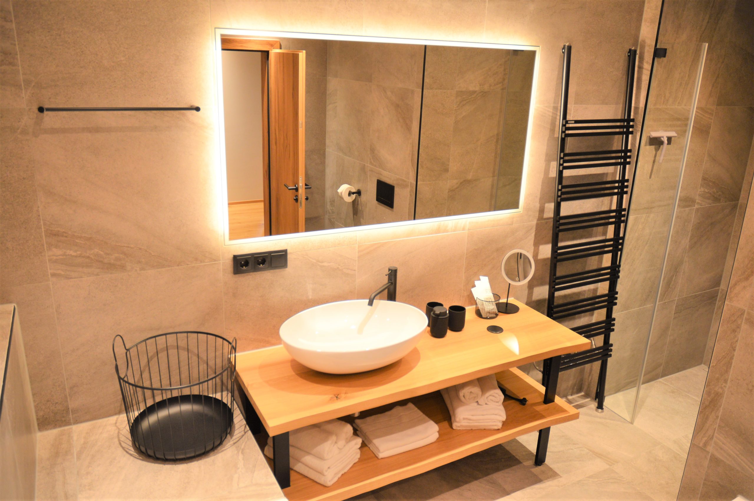 Die neuen APARTMENTS des R6 – Baujahr 2020 – liegen nahe dem Ortskern von Bad Wiessee. Schon beim Betreten meines Apartments Nr. 5 habe ich das Gefühl „Hier will ich bleiben“, und zwar gerne länger. Das stilvolle Interieur besticht mich beim ersten Blick in das Apartment. Mit viel Liebe zum Detail, ausgestattet mich hochwertigen Materialien, einem stimmigen und gemütlichen Farbkonzept und zahlreichen traditionellen Elementen verleiht die Wohnung ein Gefühl von Exklusivität.