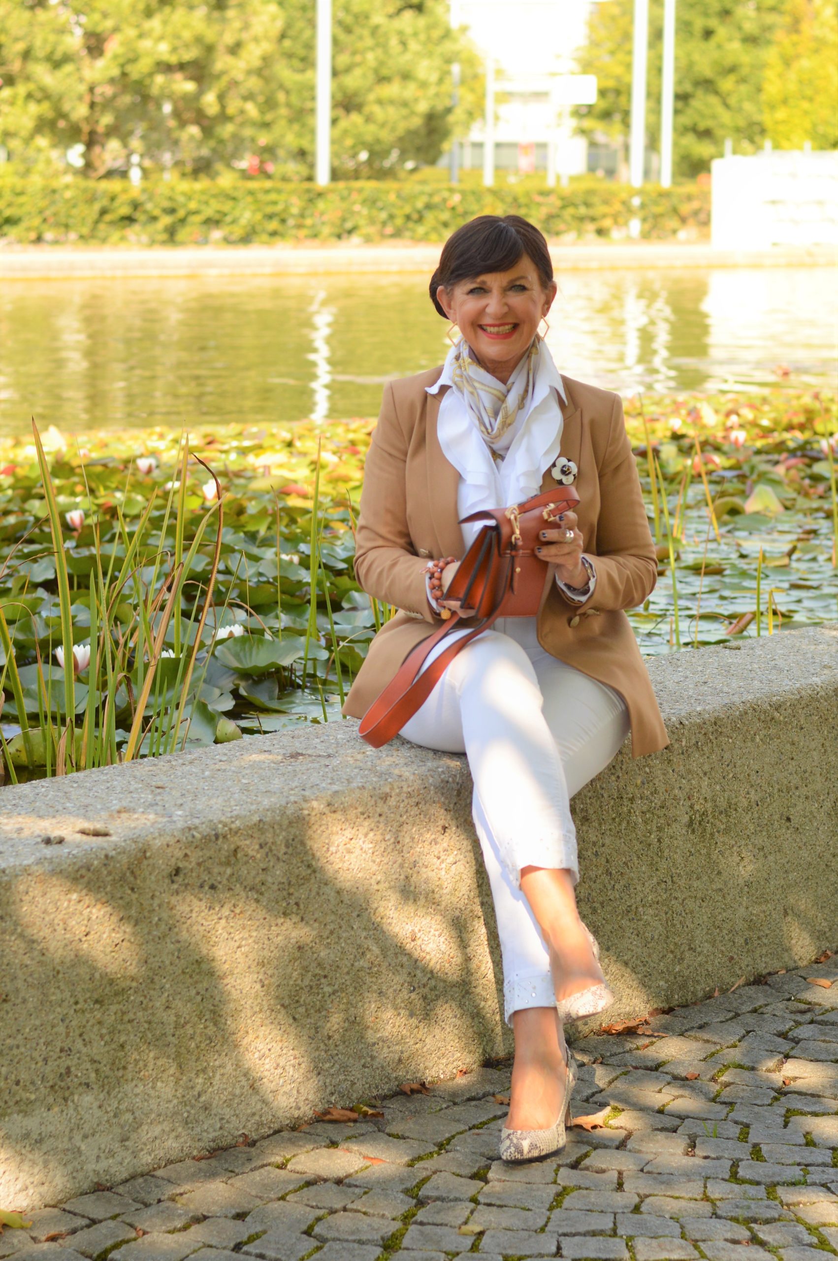 In den letzten Tagen zeigt sich das Wetter nochmals von seiner schönen spätsommerlichen Seite. Wer möchte da nicht, dass diese schöne Übergangszeit ewig bleibt. Sommerkleider verabschieden sich langsam aus dem wöchentlichen Outfit-Inspirationen. Langsam aber sicher werden wir mehr und mehr unsere Herbstkleidung hervor holen müssen. Ich kann aber nicht umhin, meine heiß geliebten weißen Jeans noch so lange zu tragen, bis der erste Schnee kommt. Die weiße Jeans erlaubt viel mehr als nur Sommershirt und offene Schuhe. Mit Blazer, Jeansjacke und schicken Accessoires genieße ich die Sonnenstrahlen in den ersten Herbsttagen mit einem Look mit weißer Jeans.