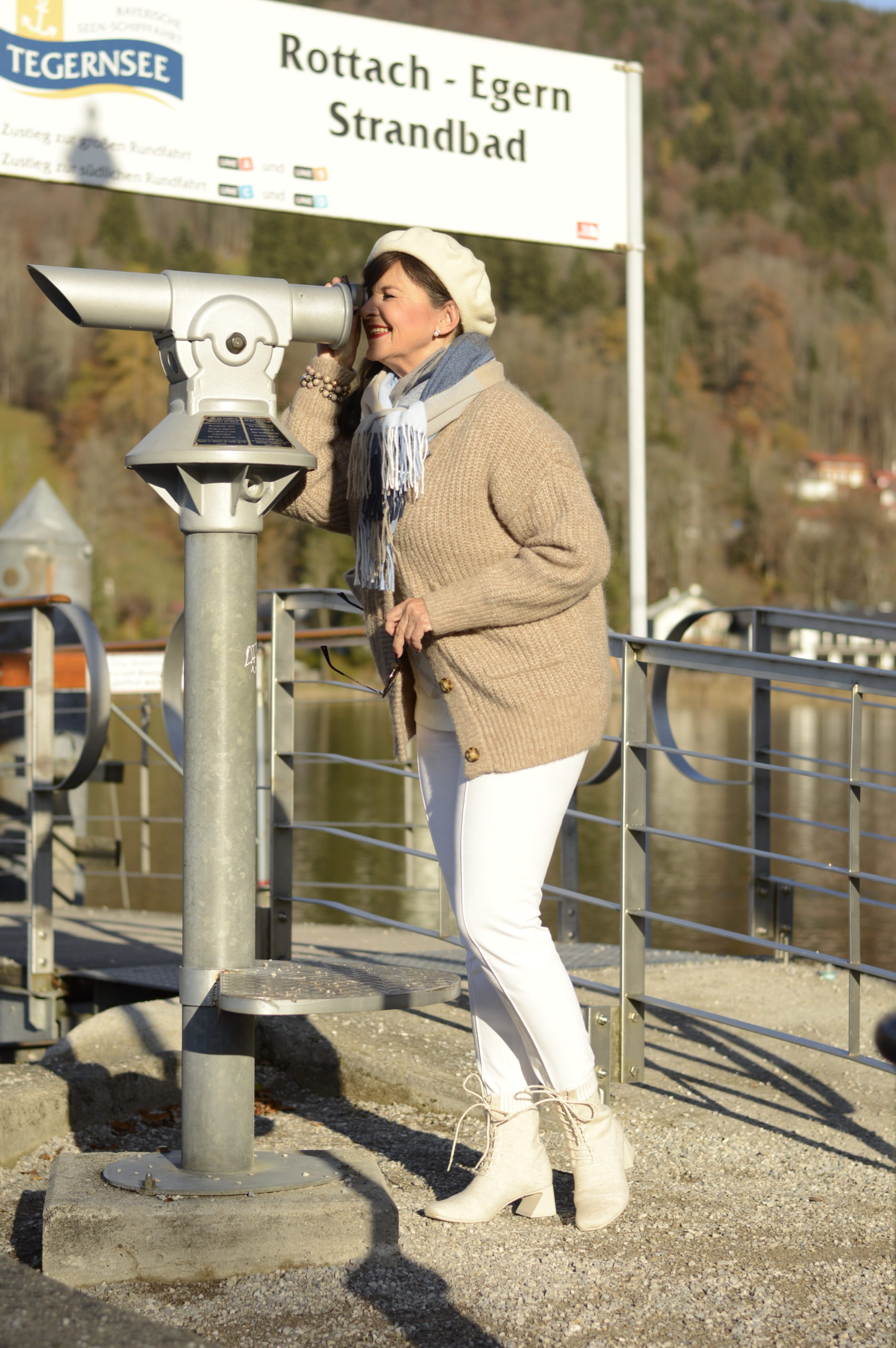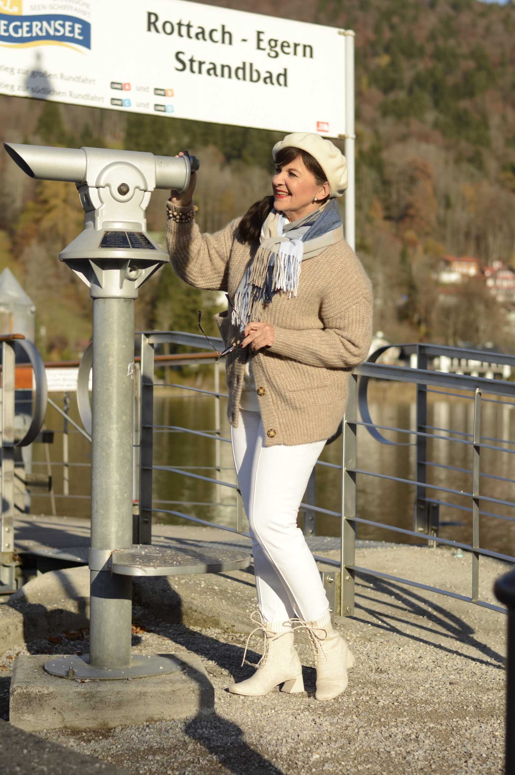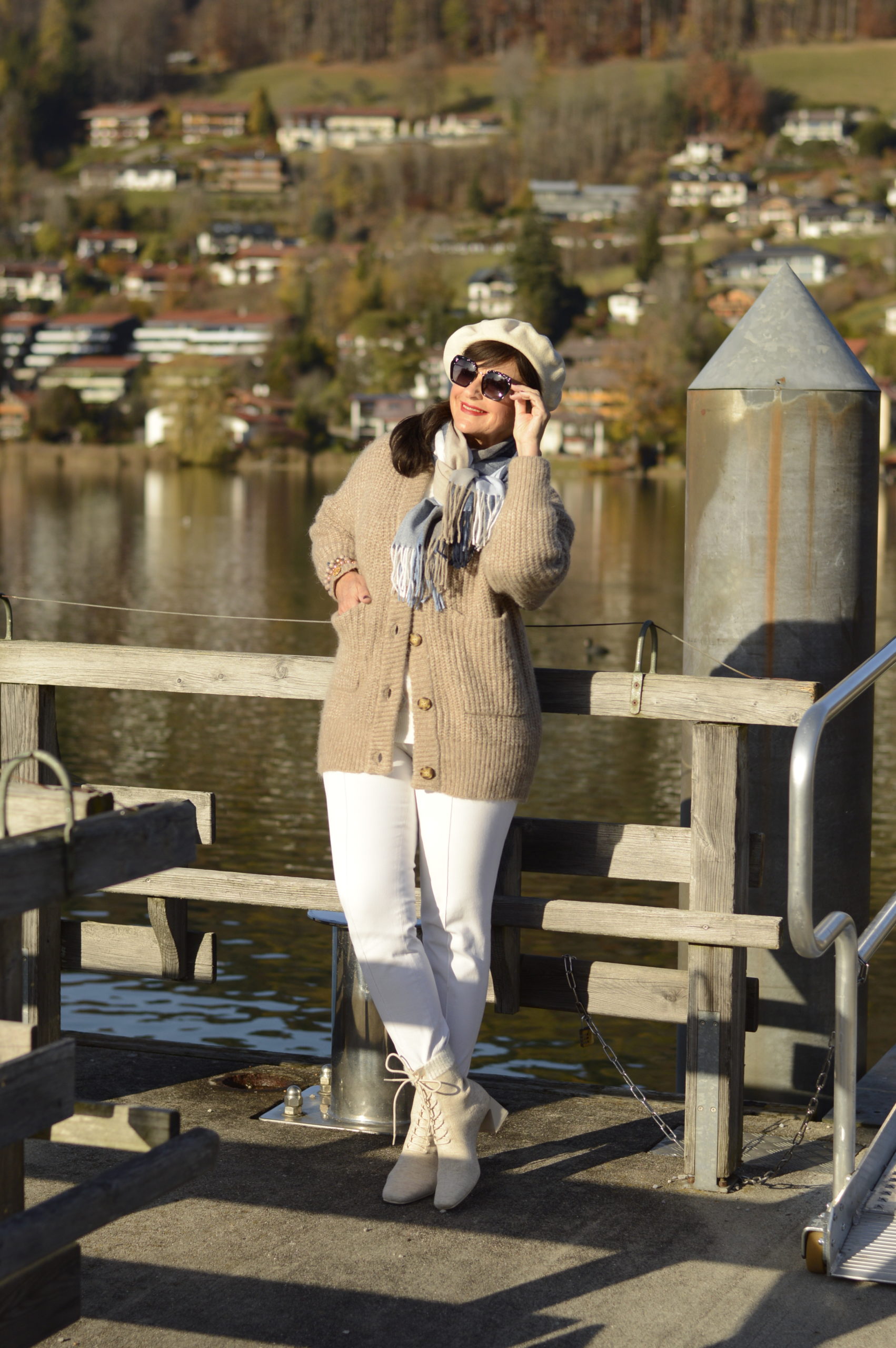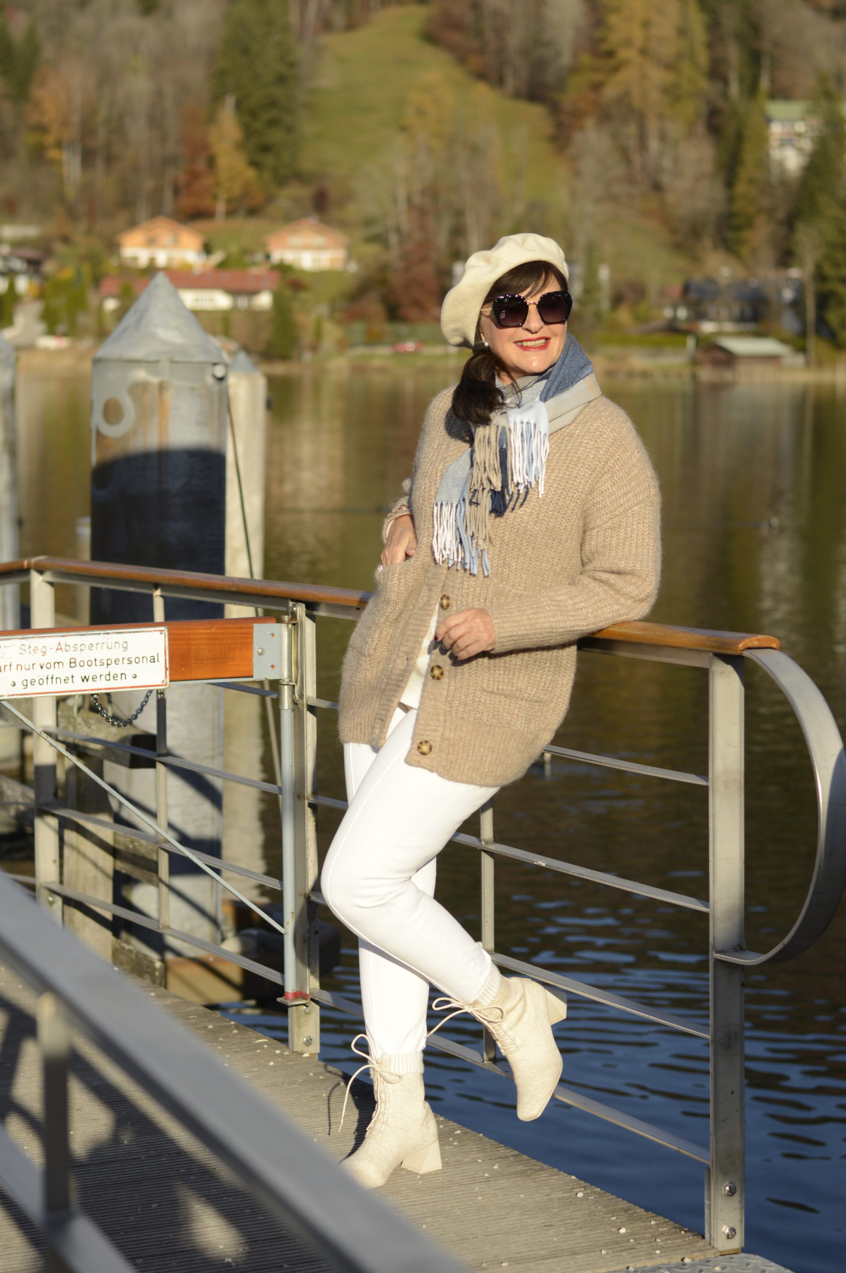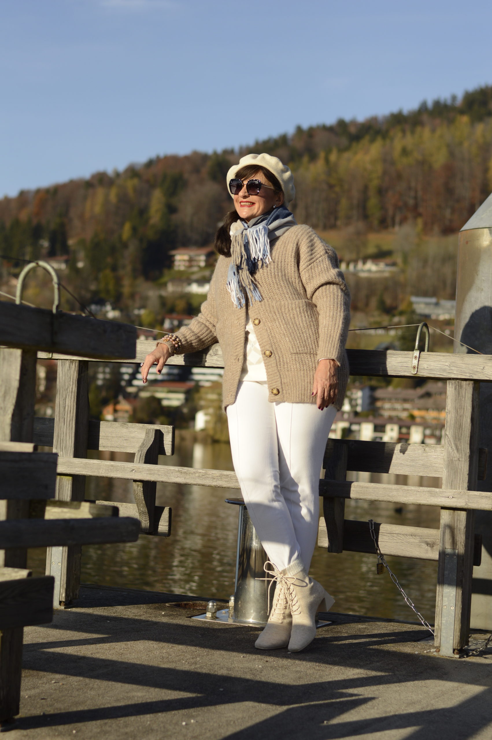 Die Bilder begeistern mich so wie der heutige Beitrag. Mal wieder ein paar Tage an den Tegernsee – das wäre mein Traum. Der Cardigan sieht mit der Hose schick aus. Die Baskenmütze großartig. Und die Stiefeletten sind der Hit !! Ich bin wieder mal total beeindruckt und werde heute meinen Cardigan nach Deinen Styling Ideen kombinieren.
