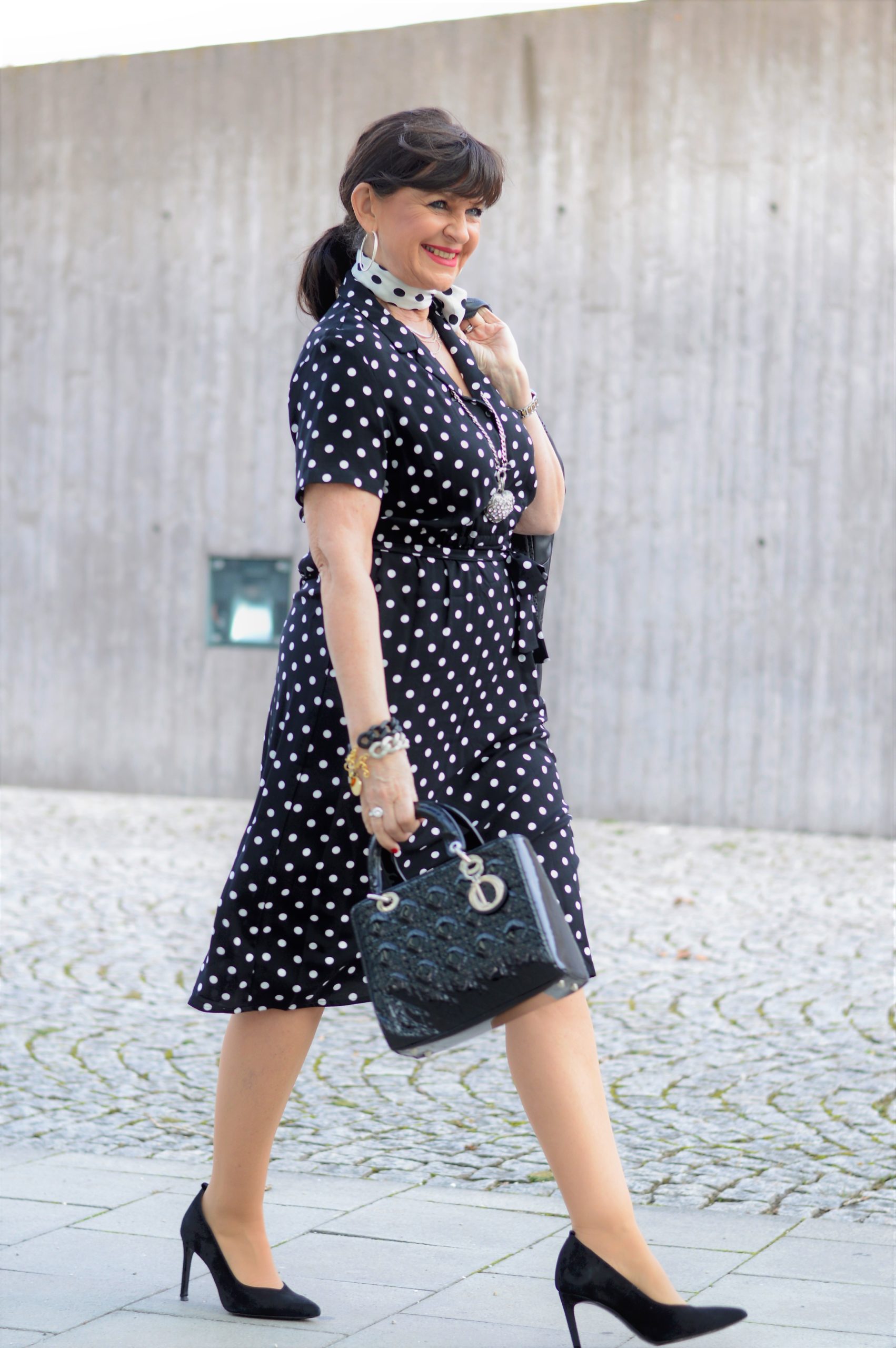 Das Tupfenkleid ist mein 2. Favorit. Auch davon habe ich drei im Schrank. Ich liebe Polkadots!