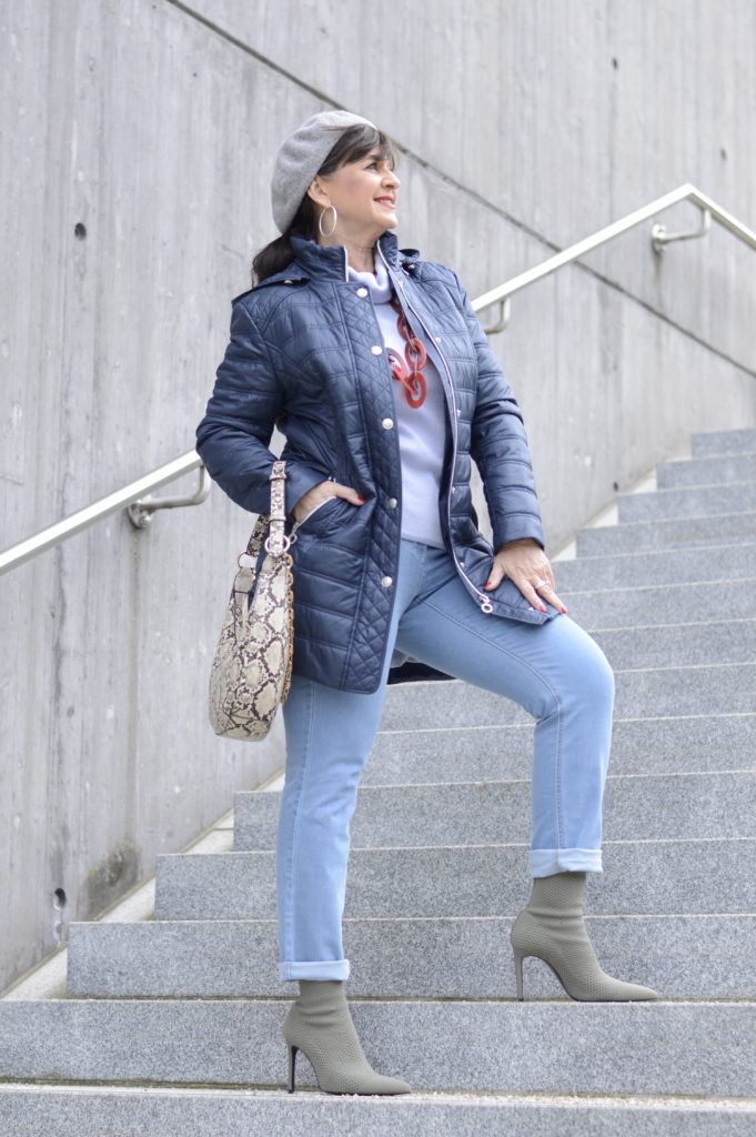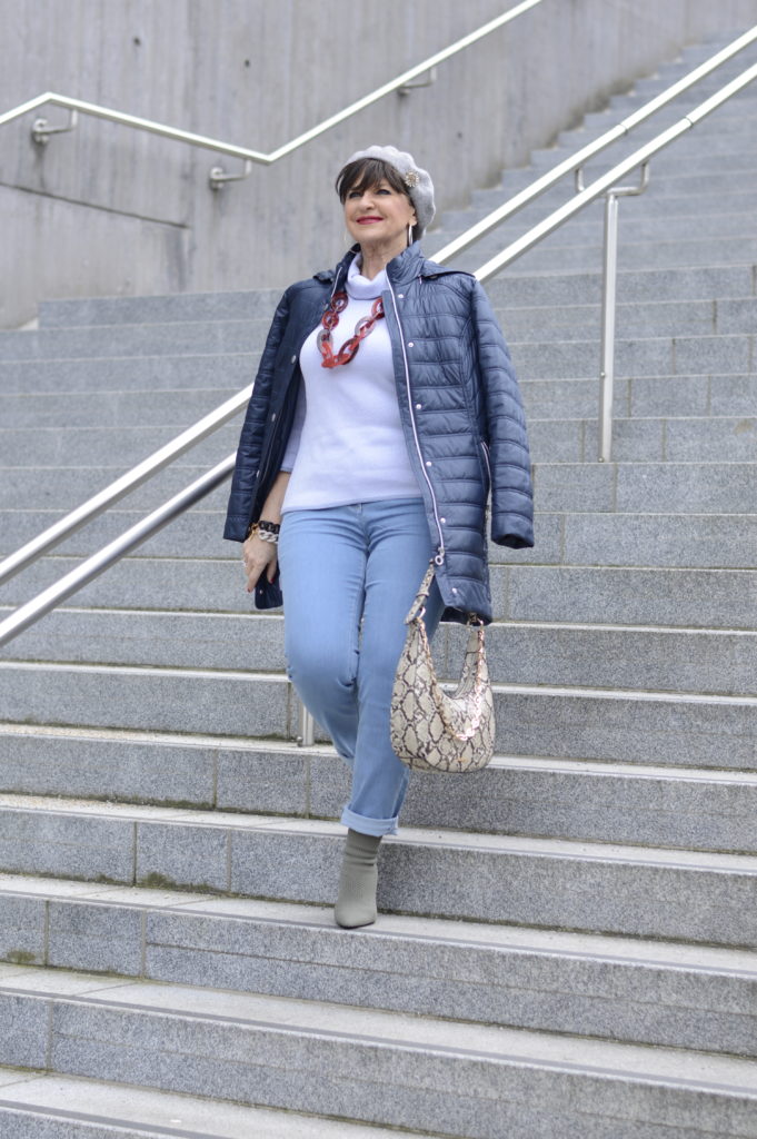 Der dunkelblaue City Look kommt ganz bestimmt auf meinen Reisen zum Einsatz. Aber nicht nur auf Reisen bin ich damit stilvoll gekleidet. Ein Treffen im Café mit der Freundin steht demnächst endlich wieder an. Da werde ich in diesem bequemen Look sicherlich auftauchen und meine Ladys begeistern.