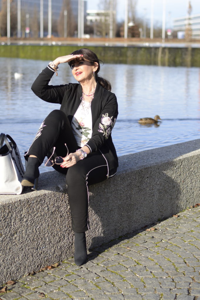 Ein stilvoller Casual Look darf in keiner Garderobe fehlen. Für den schicken Freizeitlook habe ich mich für eine Kombination aus einer Sweatjacke mit floraler Stickerei entschieden. Dazu passend gibt es die 7/8 Jogpants, die ebenfalls mit der aparten Stickerei versehen ist. Ein Shirt mit floralem Druck spiegelt den Frühling wider. Ein richtig schöner Look, den man nicht nur in der Freizeit anziehen kann. Wer im Home Office nicht nur im Schlapperlook angezogen sein will, ist mit dieser Kombination genau auf der richtigen Seite.