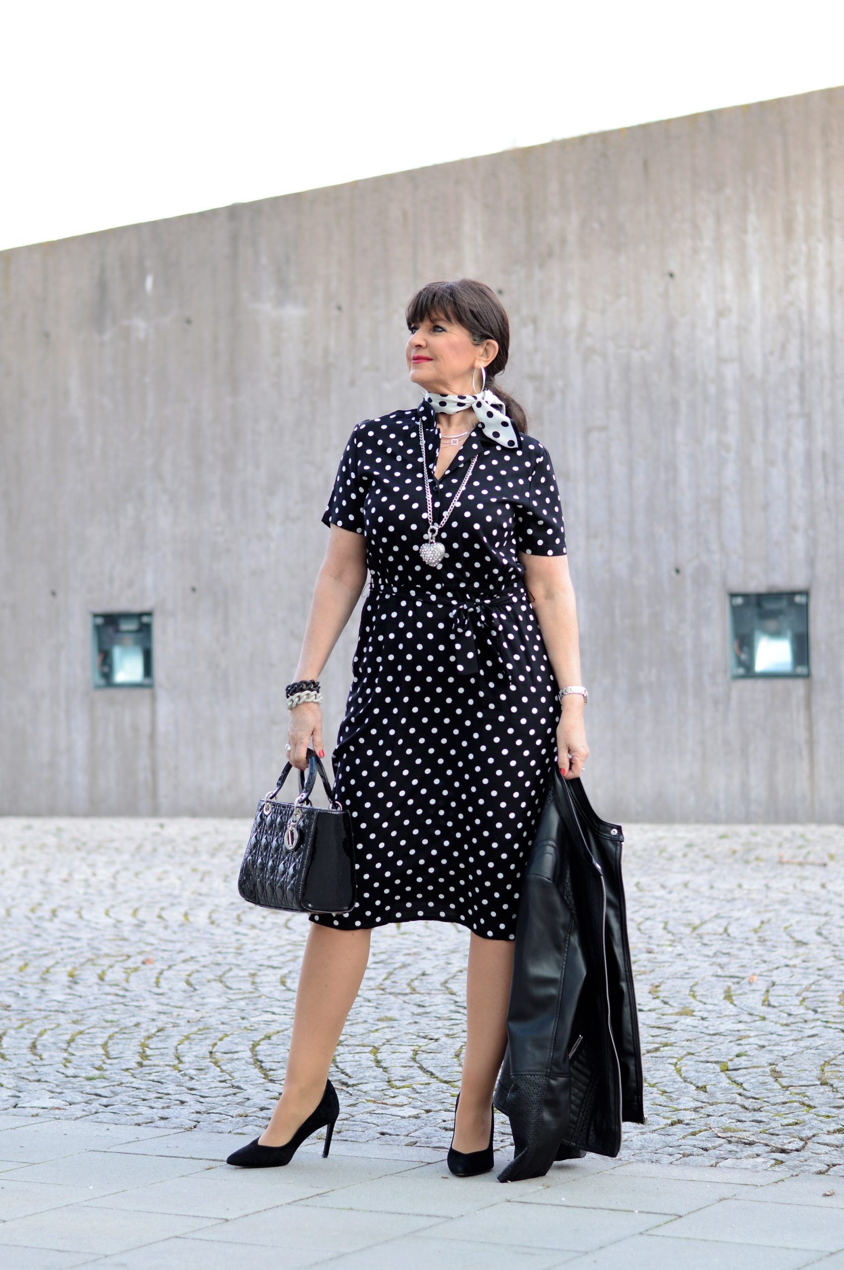 In das Kleid mit Tupfendesign habe ich mich auf den ersten Blick verliebt. Apropos verliebt – das wäre auf jeden Fall ein Kleid für das erste Date. Vielleicht steht im Frühling ein erstes Kennenlernen mit einer neuen Liebe an. Damit bleiben wir Frauen 50plus definitiv in bester Erinnerung.