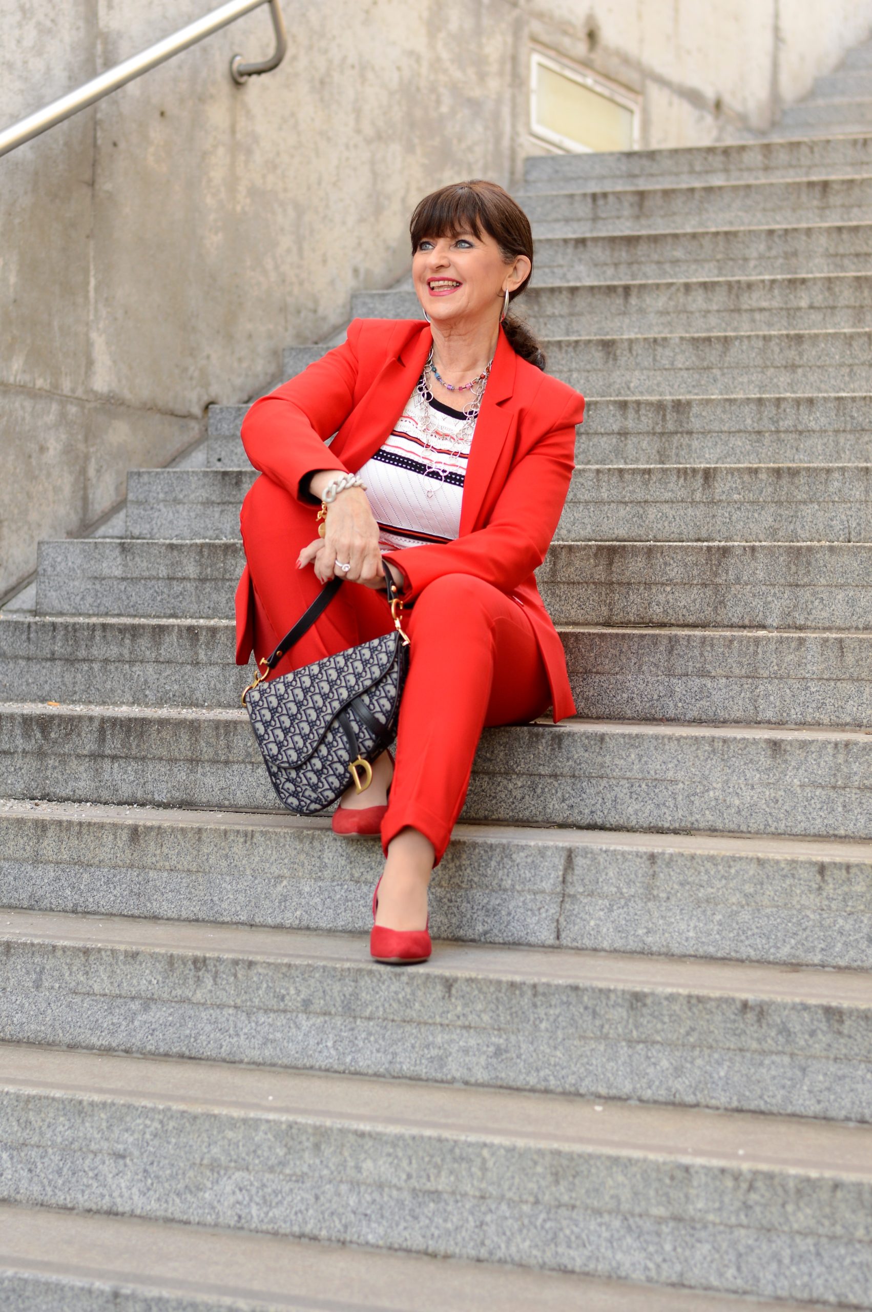 dann würde ich sagen, Du hast Deinen roten Hosenanzug gefunden – er ist wirklich wunderschön und komfortabel. Der rote Blazer ist ein Hingucker zu vielen anderen Outfits.