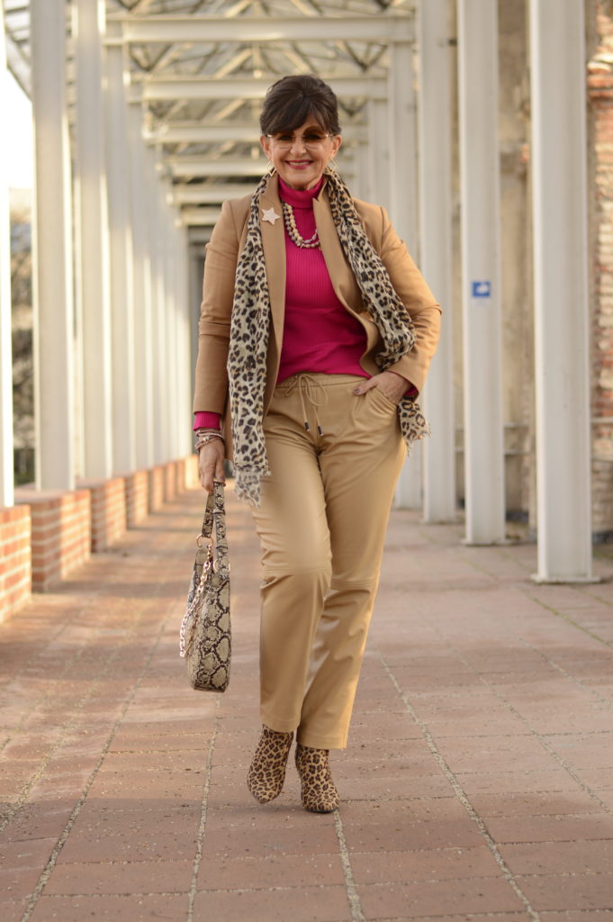 Pink ist Deine Farbe, liebe Martina, und in Kombination mit der lässigen Hose im hellen Kamel