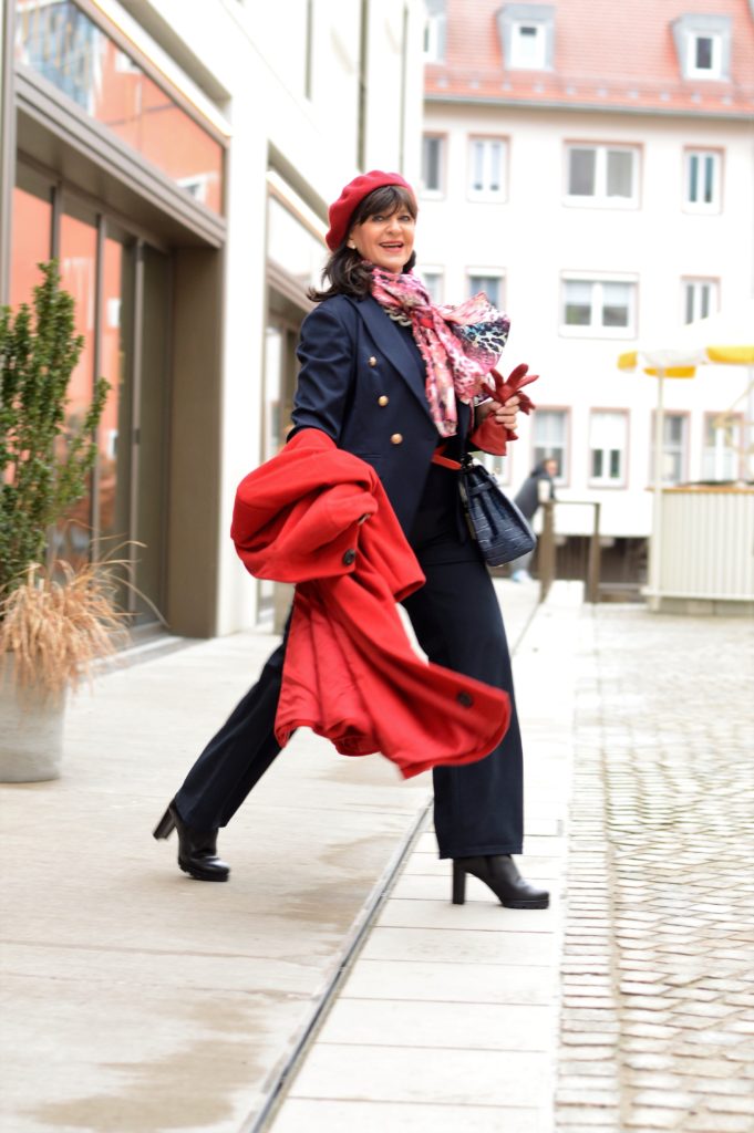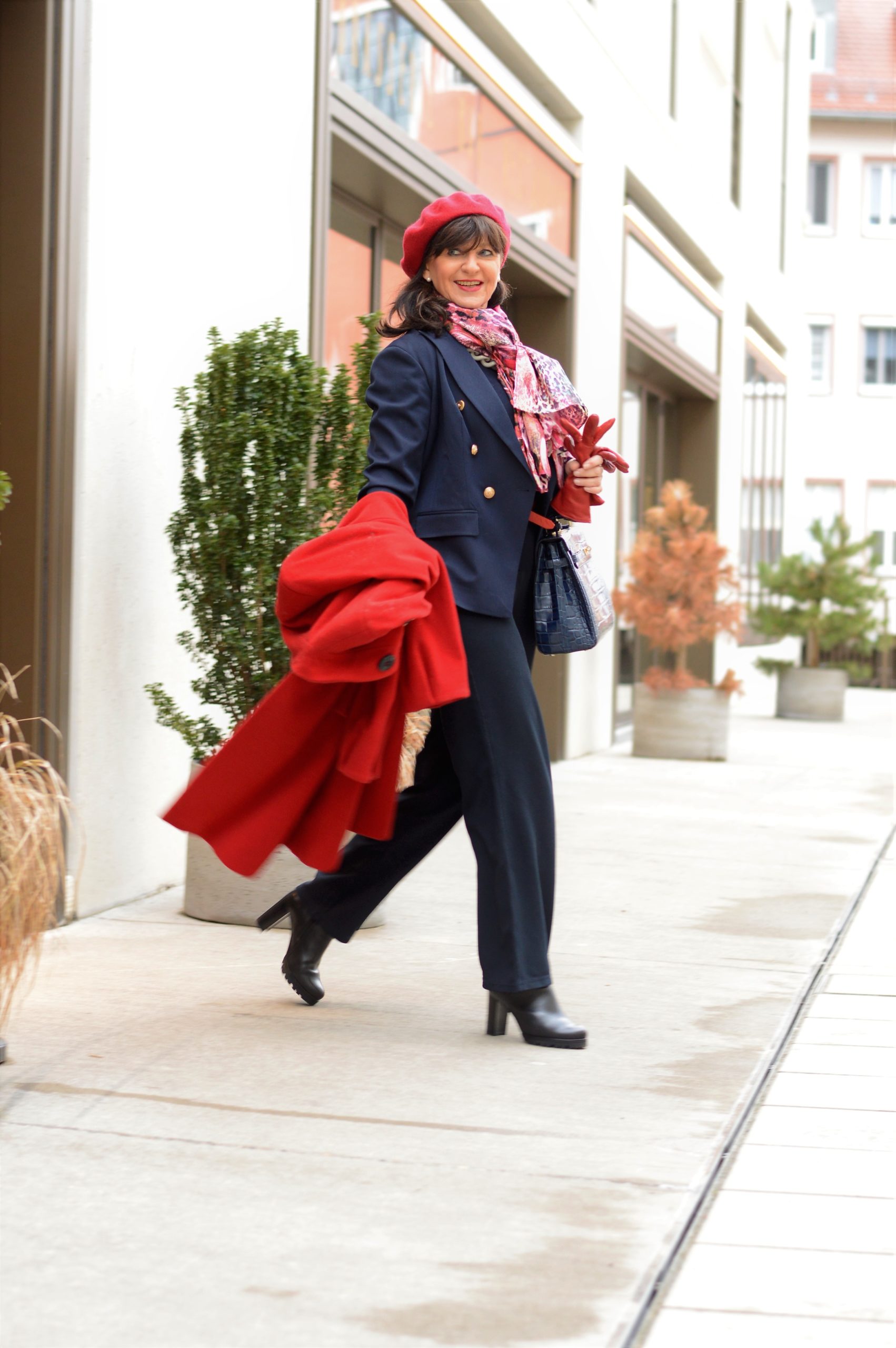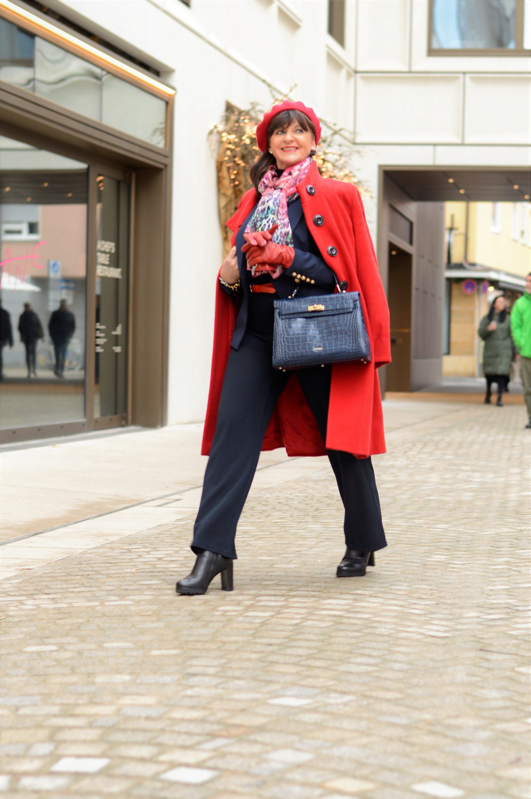 Eine Frau sieht ROT. Zum Business Launch oder Kundentermin sorgt der rote Wollmantel für den entsprechend positiven ersten Eindruck. Die Accessoires wie Handschuhe, Tuch und Kopfbedeckung runden einen eleganten Business Look im Handumdrehen stilvoll ab. Ich liebe diesen roten Wollmantel, den ich seit vielen Jahren trage.