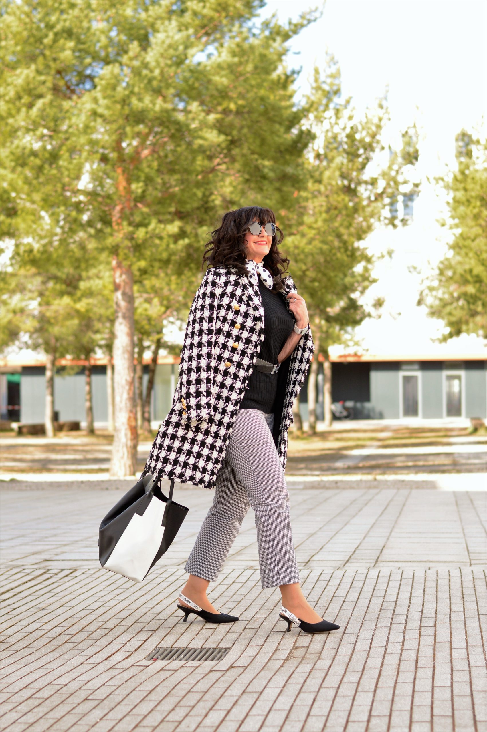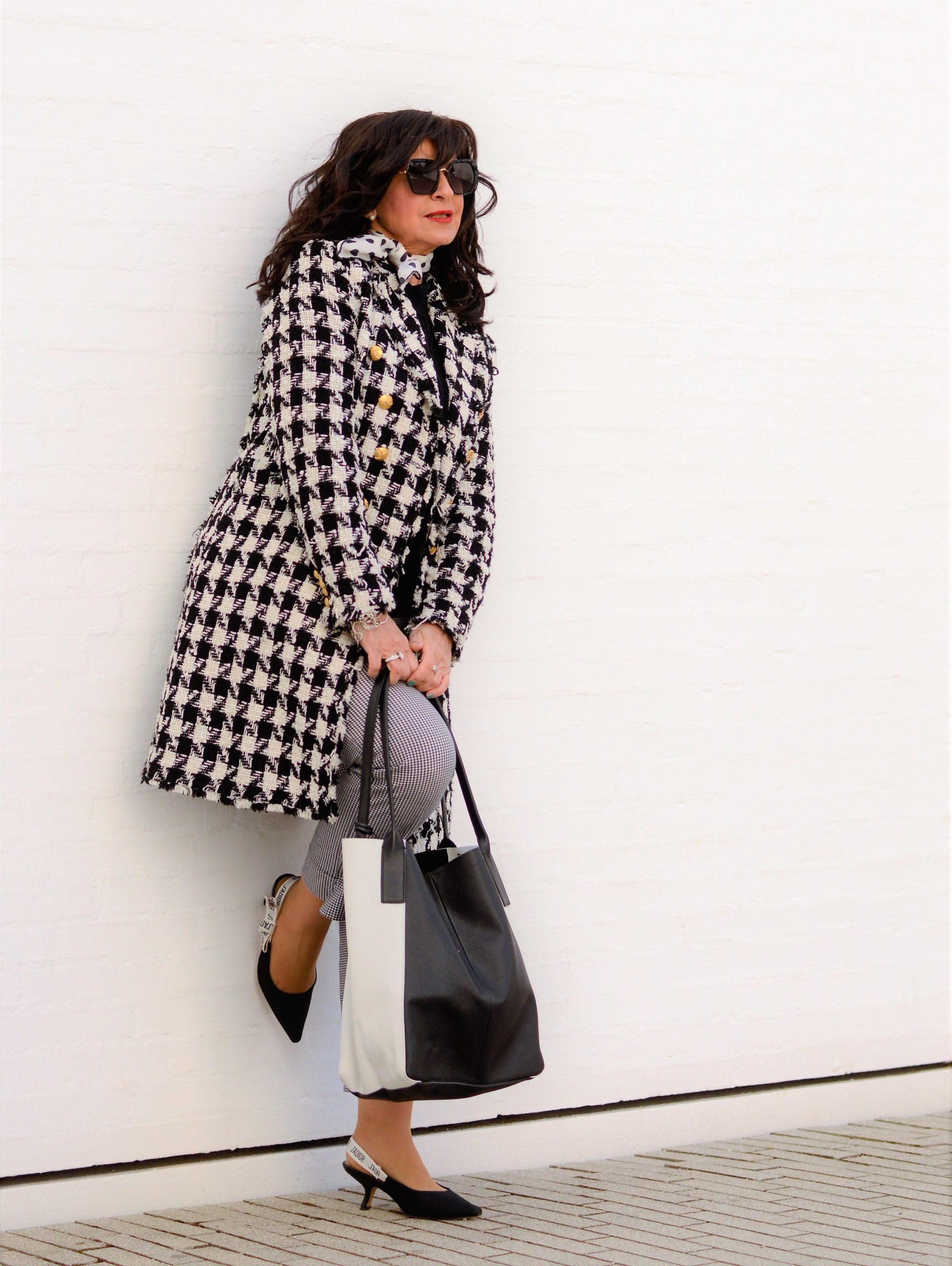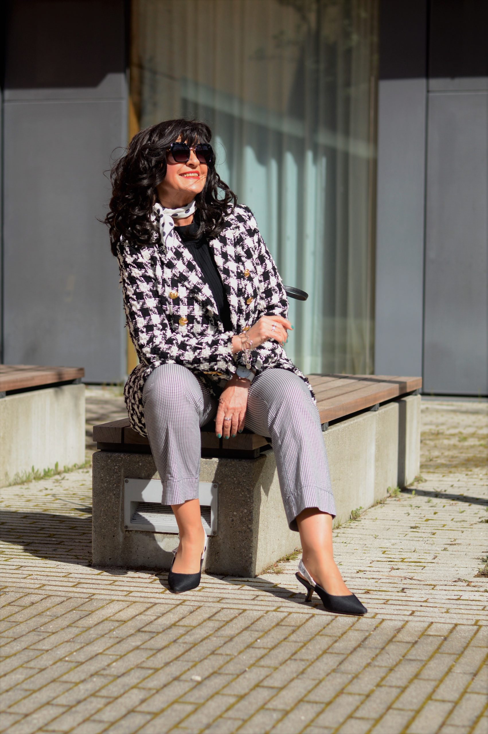 Nach so vielen bunten Outfits dreht sich heute alles um einen Klassiker – um ein Outfit in Schwarz und Weiß. Minimalistisch kann ich meinen heutigen Look geradezu nennen, da die Akzente auf die Kombination von Pepita und Hahnentritt gelegt sind.