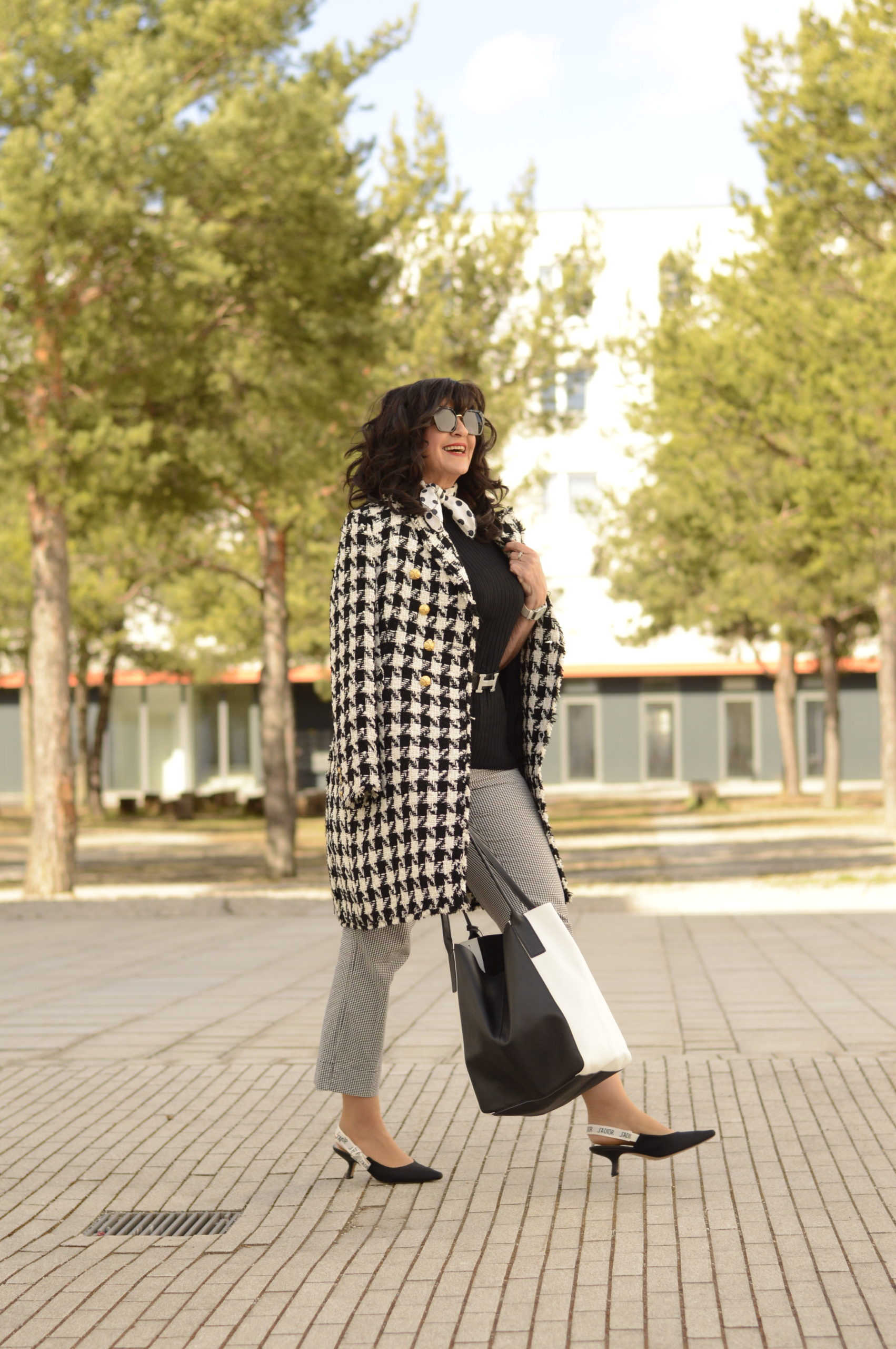 Black and white is a classic combo and you look fabulous in all these looks! Love that houndstooth coat!