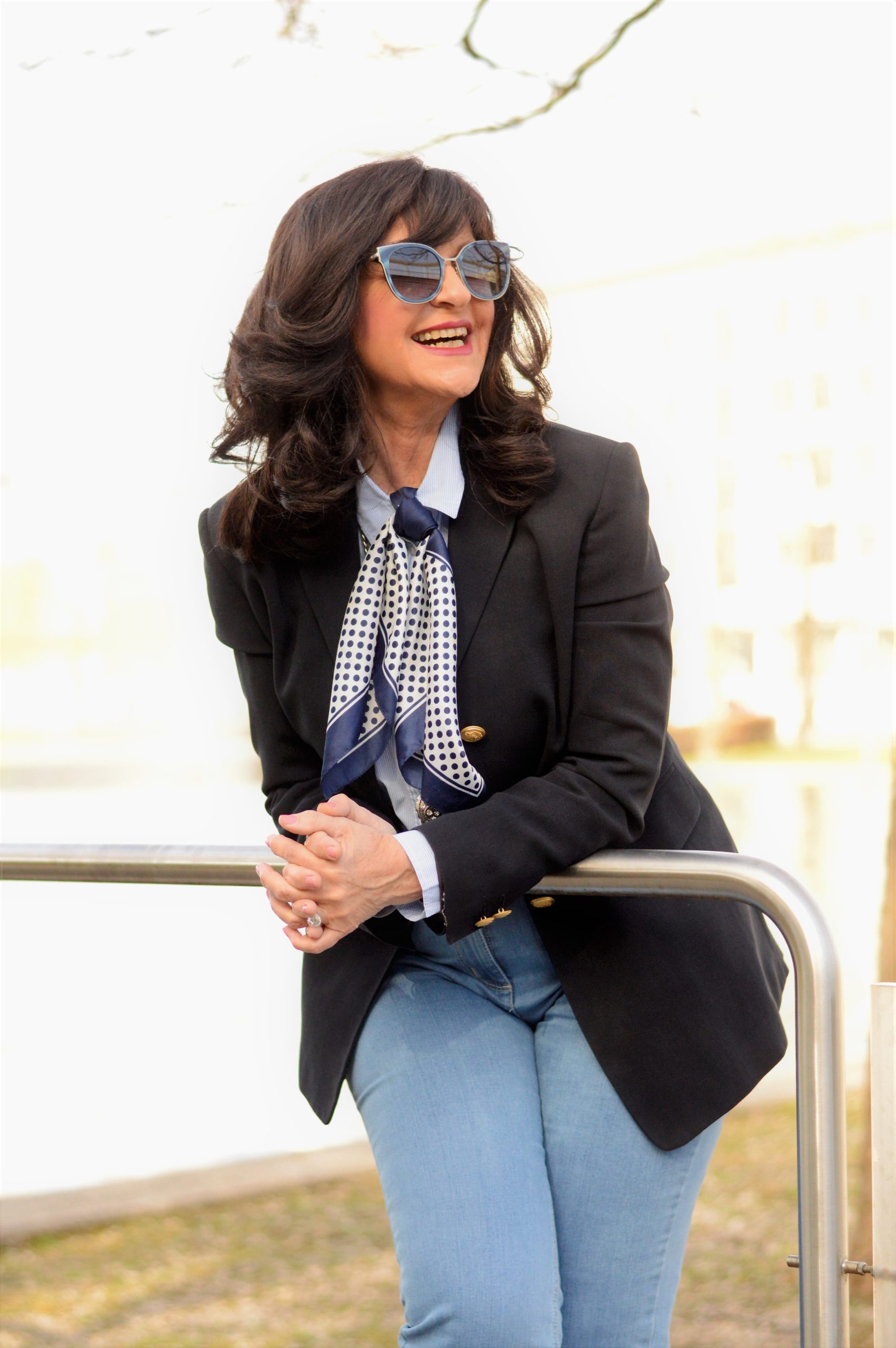 Für mich ist es der ideale Kombipartner zu einer Jeans, sollte eine schicke Wirkung erzielt werden. Jede Lady sollte einen dunkelblauen Blazer im Kleiderschrank haben. Sie lassen sich genauso gut zu vielen Kleidern oder Röcken kombinieren.