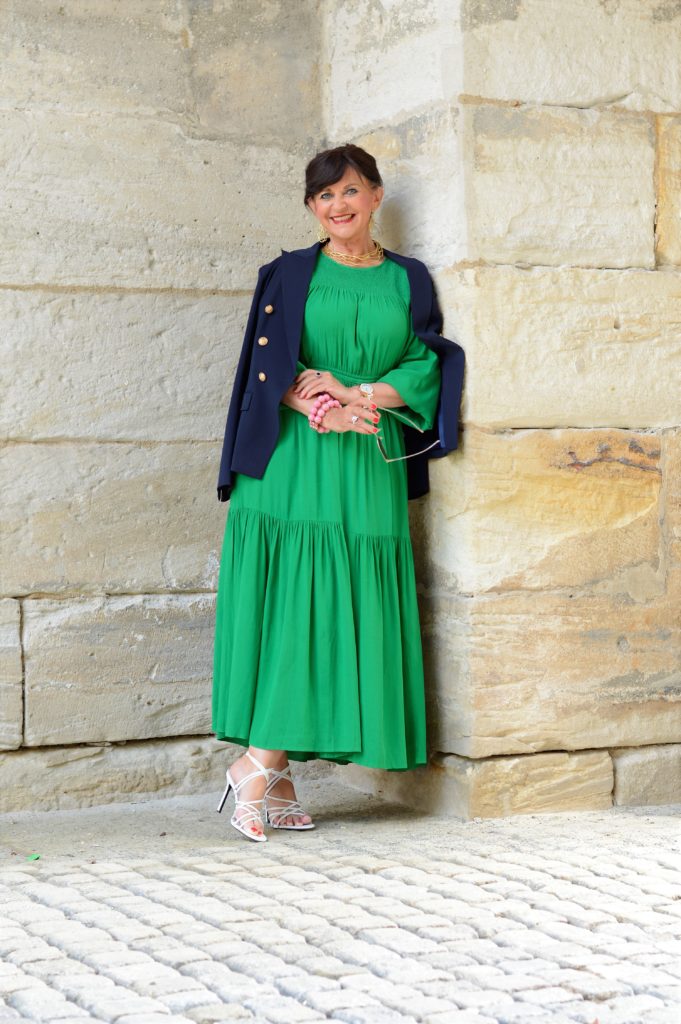 Wie kombiniere ich ein grünes Maxikleid?