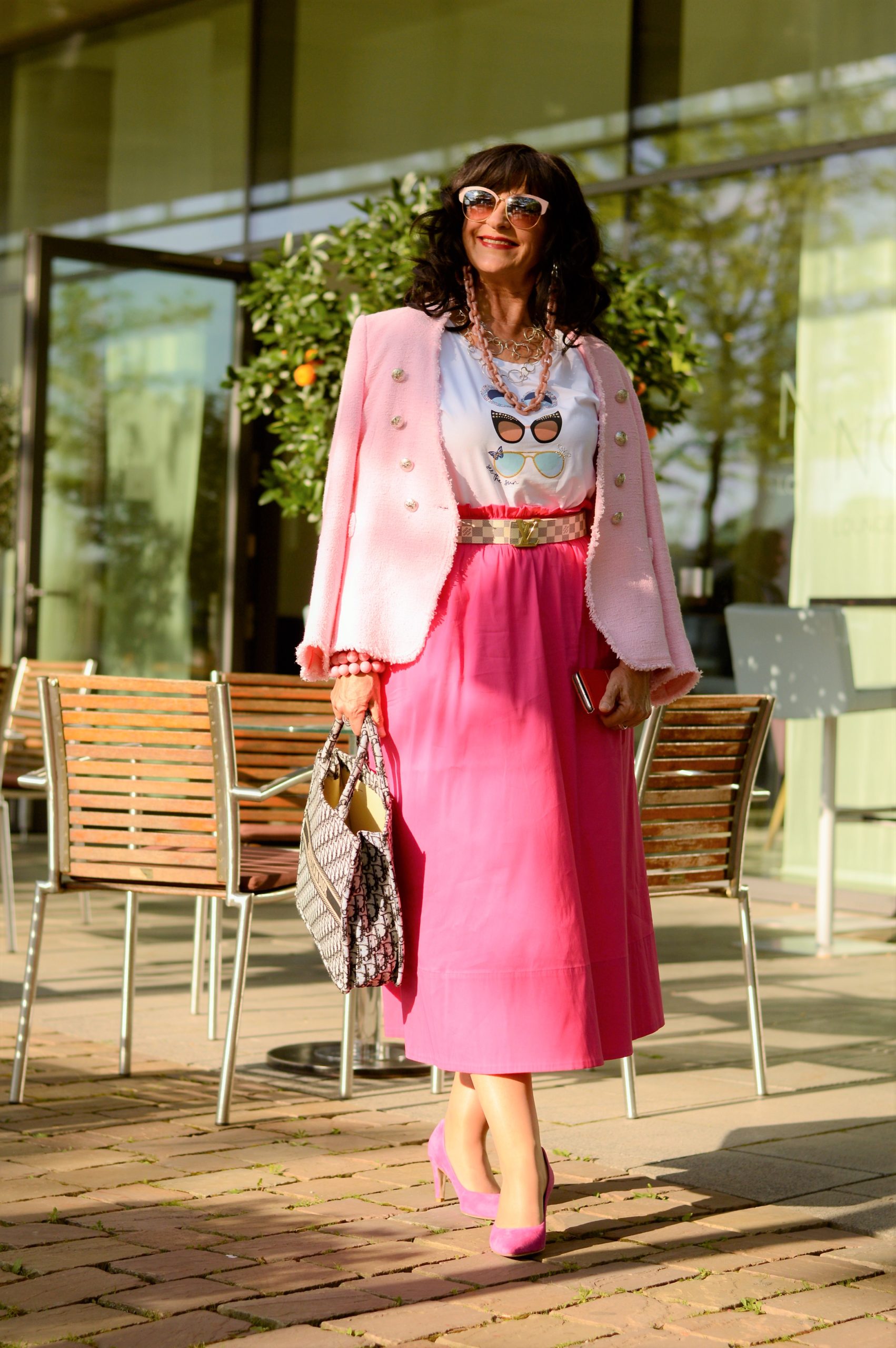 es ist mir immer wieder eine Freude, Deine Beiträge zu lesen. Da ich eine Schwäche für Pink habe, ist dein heutiger Beitrag für mich ein absolutes Highlight. Kombination 1 und 3 gefallen mir besonders gut. Durch Deinen Blog inspiriert, achte ich intensiver auf Accessoires .Bei den heutigen Kombinationen gefallen mir Gürtel, Schuhe, Halskette, Armkette und Armbanduhr sowie Sonnenbrille sehr gut. Vielen Dank!