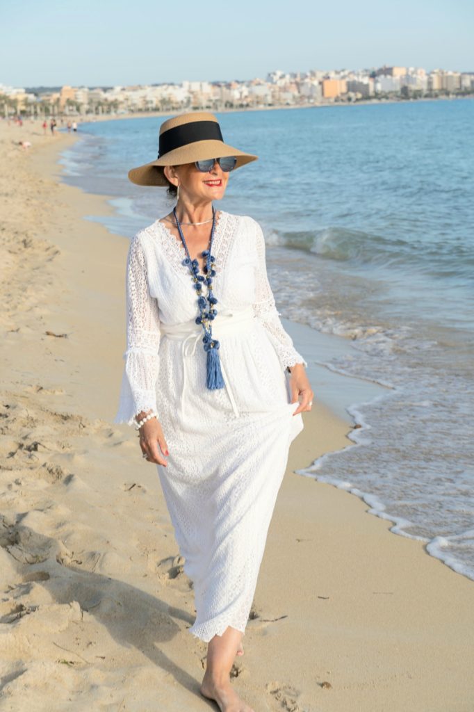 Dein weißes Kleid mit blauer Kette oder Hut 👒 ein Traum.