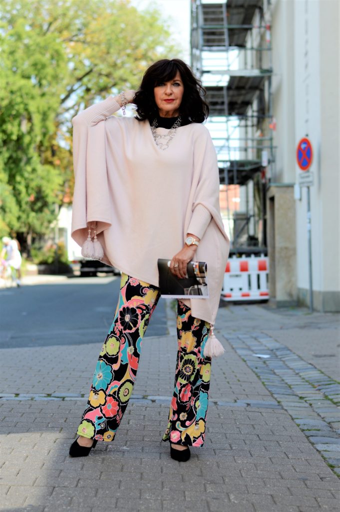 Mit schwarz im Oberteil finde ich sie besonders eloquent und modisch. Ich trage dazu einen Seidenrolli und einen breiten Gürtel. Sollte es etwas kühler werden, schlüpfe ich ganz einfach in einen Blazer. Dieser kann schwarz sein, aber auch alle anderen Farben, die im Print vorkommen. können als Blazer oder als Oberteil zu HOSE SPINO BLOSSOM kombiniert werden.