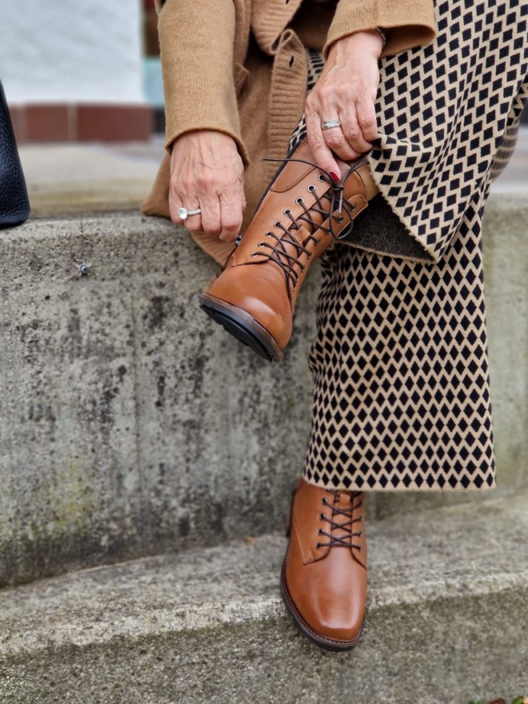 Das ist ein wunderschöner herbstlicher Look liebe Martina ♥. Ich mag die Kombi mit den Beige- und Brauntönen sehr gerne. Und die Schuhen passen perfekt dazu. Sie sind wirklich ein toller Herbstbegleiter. Wie Du weißt, besitze ich die Schnürstiefel von Solidus in der Farbe Hellbraun und mich begeistern diese Schuhe einfach sehr.