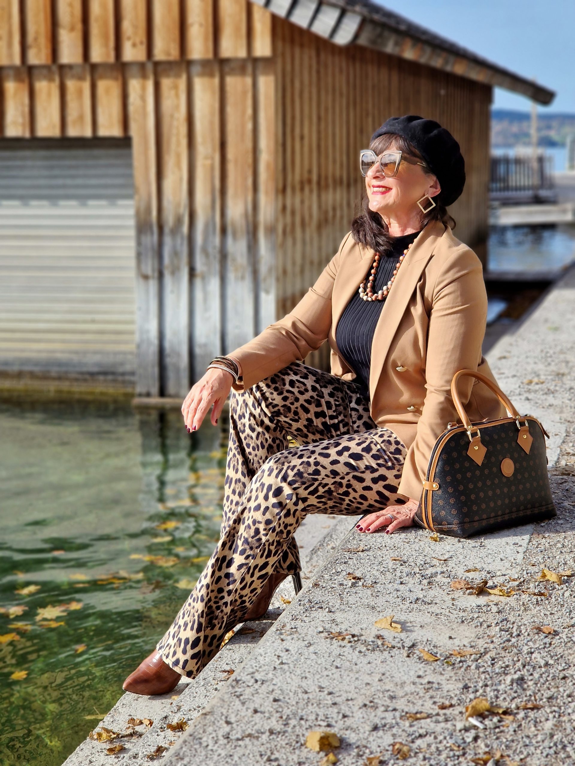 Wer schon einmal in Meran, Bozen oder Italien war, weiß, dass es dort so schöne Looks gibt. Ich konnte bei meiner Reise Ende Oktober leider nicht umhin, mir ein paar neue Sachen zu kaufen. So ist der Look mit der Leo-Hose und dem Blazer entstanden. Die Flare-Jeans mit Animal-Print habe ich bei CALZEDONIA entdeckt. Ich wusste gar nicht, dass es dort außer tollen Strümpfen eine enorme Auswahl an Hosen gibt.