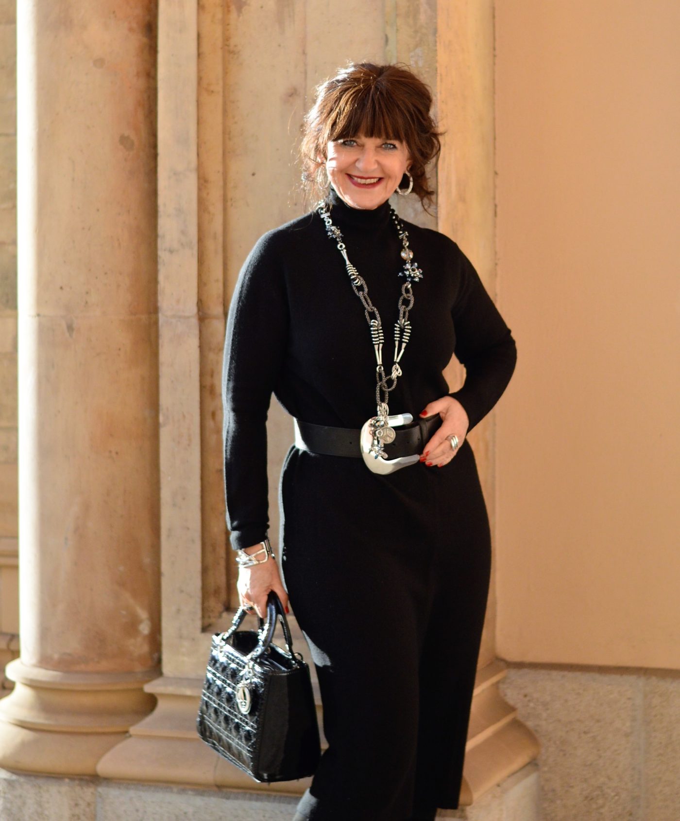 ich liebe Strickpullover und Strickkleider. Ich kombiniere sie gern mit zarten Tüchern oder auch mal einer schicken Brosche. Ein Gürtel ist bei mir ein Muss da ich mit 1,60 nicht so groß bin und die Proportionen besser aussehen. Ich liebe es sie mit Stiefeln zu tragen. Mit angerauten Strumpfhosen , die man darunter nicht sieht, ist man warm angezogen und Schneeflocken wischt man einfach weg. Optimal für den Weihnachtsmarktbummel. Ich tendiere eher zu klassischen Farben, da habe ich jahrelang etwas davon. Als Herbst Typ habe ich ein dunkelpetrolfarbenes mit Perlenstickerei am Oberteil, ein cremeweisses und ein mittelbraunes. Auch Leoaccessoirs sehen dazu toll aus.