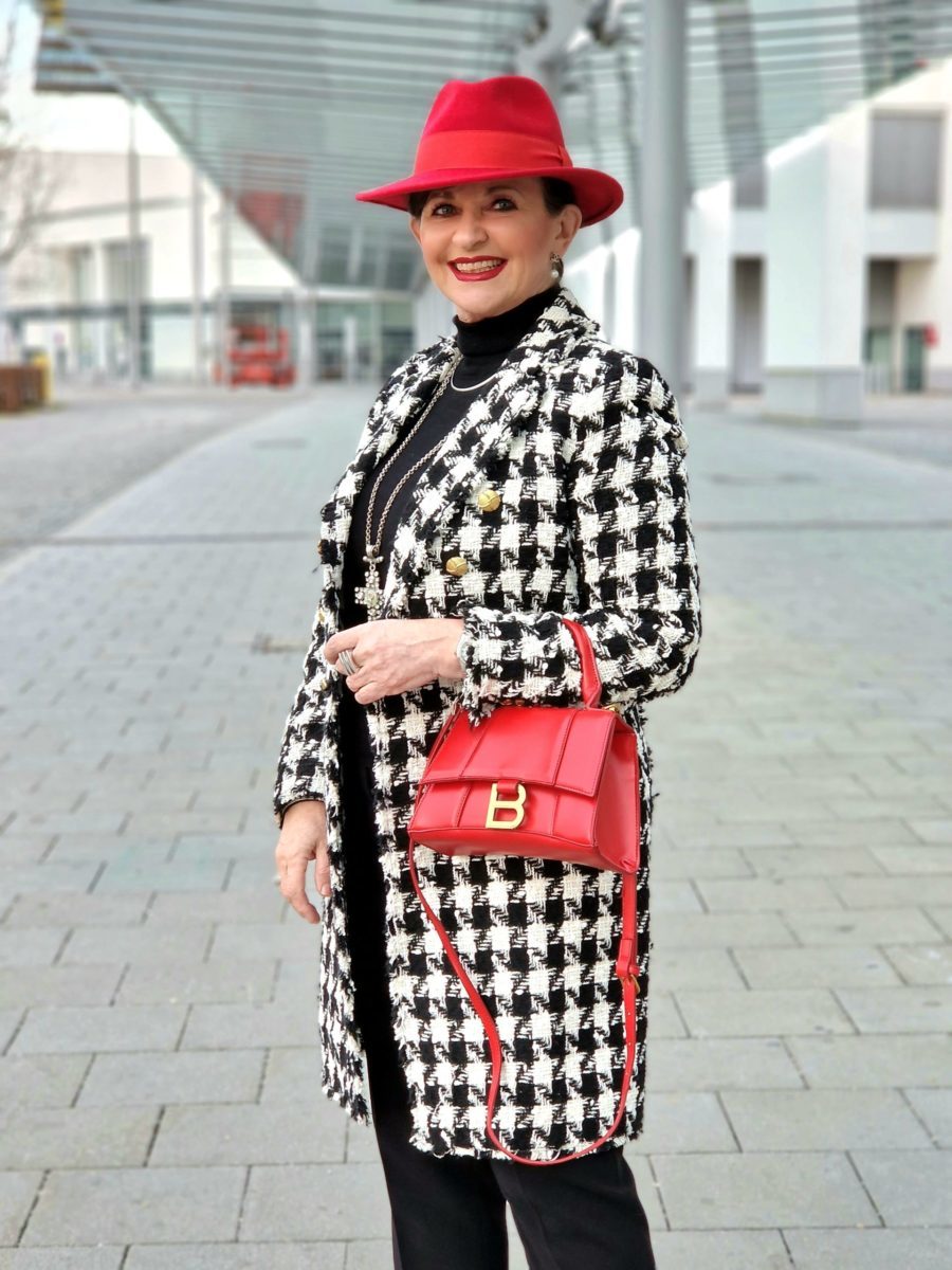 wow, Dein Outfit mit dem roten Hut und dem Hahnentritt-Mantel ist ja superelegant. Einfach toll! Und auch die verschiedenen Kombinationen mit dem hellblauen Strickkleid stehen Dir ganz wunderbar. Ich stimme Dir zu, Nachhaltigkeit ist ein wichtiges Thema in Sachen Kleidung und Mode. Umso mehr freue ich mich über Deine Vorschläge, Tipps und Ideen, um bereits Vorhandenes immer wieder neu zusammenzustellen. Wichtig dabei ist, denke ich, möglichst zeitlose Klassiker im Kleiderschrank zu haben und diese mit einzelnen Teilen, die gerade „in“ sind, zu kombinieren. Die Mode wechselt ja ständig. Aus meiner Sicht ist es pure Verschwendung und Vergeudung von Ressourcen, modische „Must Haves“ erst zu kaufen und dann nach einer Saison wieder zu entsorgen. Auf jeden Fall hast Du mich wieder dazu inspiriert, in meinem eigenen Kleiderschrank zu shoppen – heute ist ein guter Tag dafür, denn draußen ist es nass, kalt und ungemütlich.
