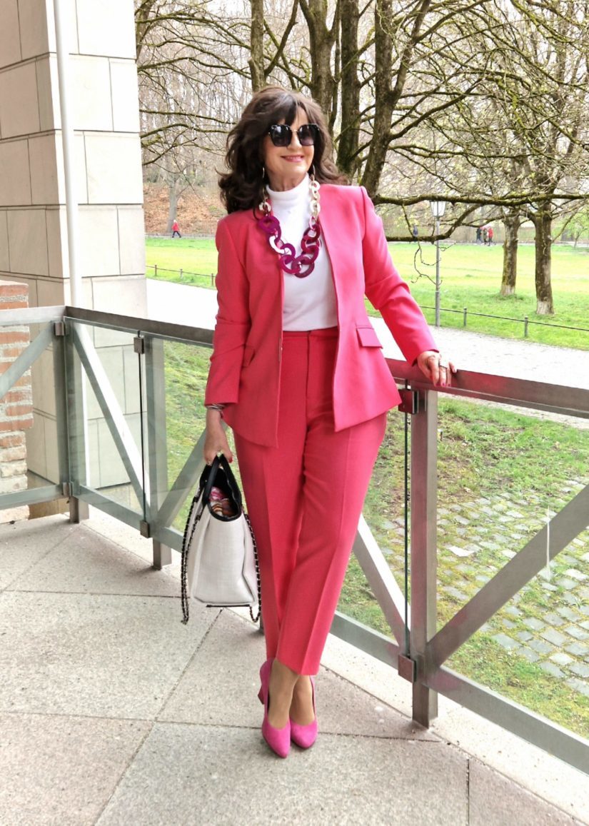 So kombiniere ich einen pinken Hosenanzug