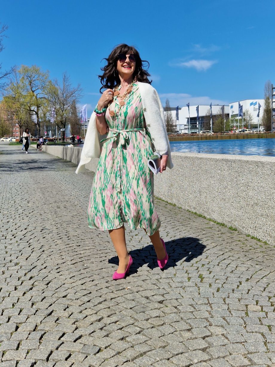 So macht der Mai FREUDE an neuer Mode. Der Freitag ist meine Nr 1. Das Kkeid sieht so weiblich aus und die pinken Accessoires sind besonders gut gewählt.