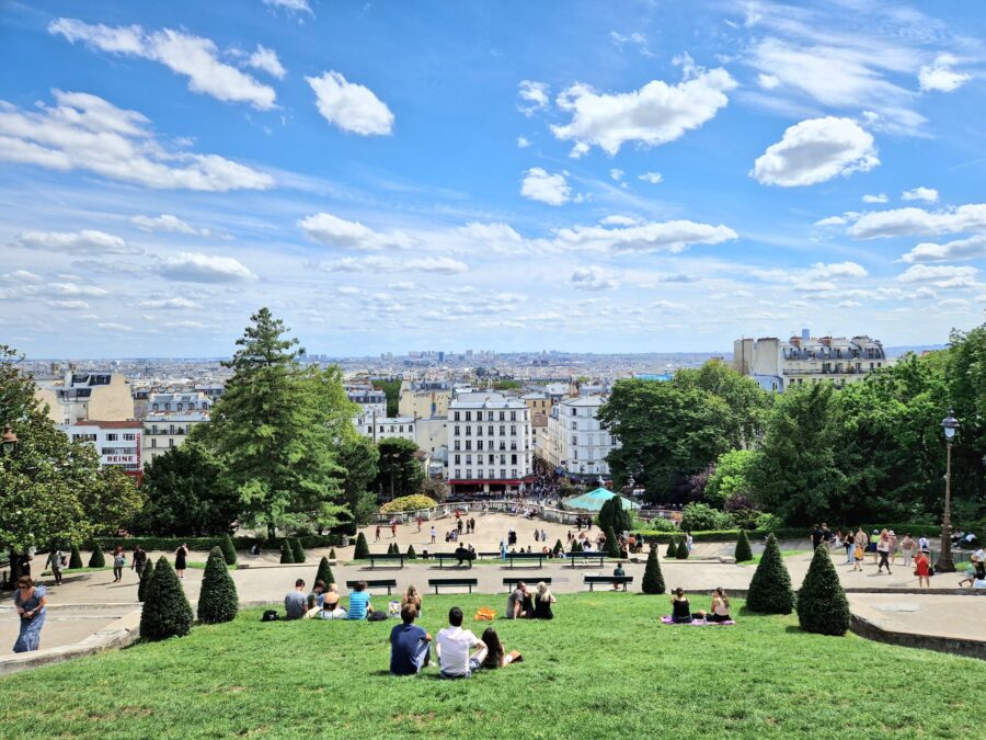 Am Nachmittag habe ich den Ausflug MONTMARTRE und SACRÉ COEUR gebucht. Die weiße Basilika auf dem Montmarte Hügel leuchtet von weitem blenden weiß und imposant. Gerade heute pilgern gefühlt alle Touristen die vielen Treppen hinauf, um den imposanten Blick über Paris zu genießen.