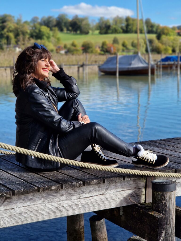 Monochrom in schwarz und Lederlook. Ein Outfit perfekt für einen entspannten Tag am See. Für einen Ausflug an den Tegernsee passen die bequemen und kuschelig warmen Stiefel hervorragend zum Outfit. Ich freue mich schon, mit diesen Boots durch den ersten Schnee zu laufen.