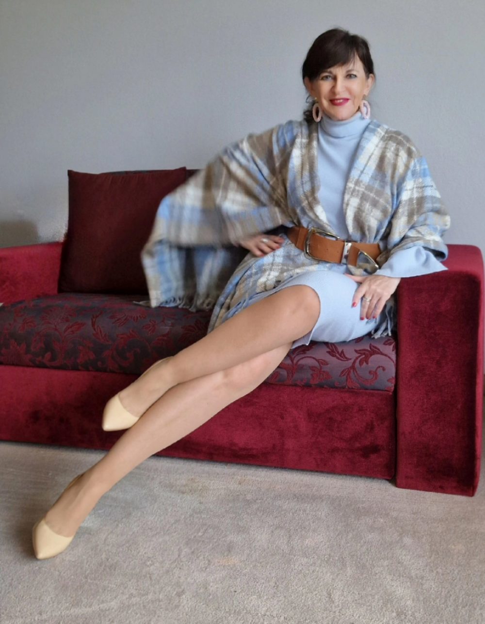 das Strickkleid bietet so viele Möglichkeiten, getragen zu werden. Tücher, Schals und Capes sind ebenfalls meine Lieblinge bei Kombinationen, vor allem wenn ich auf Reisen bin.