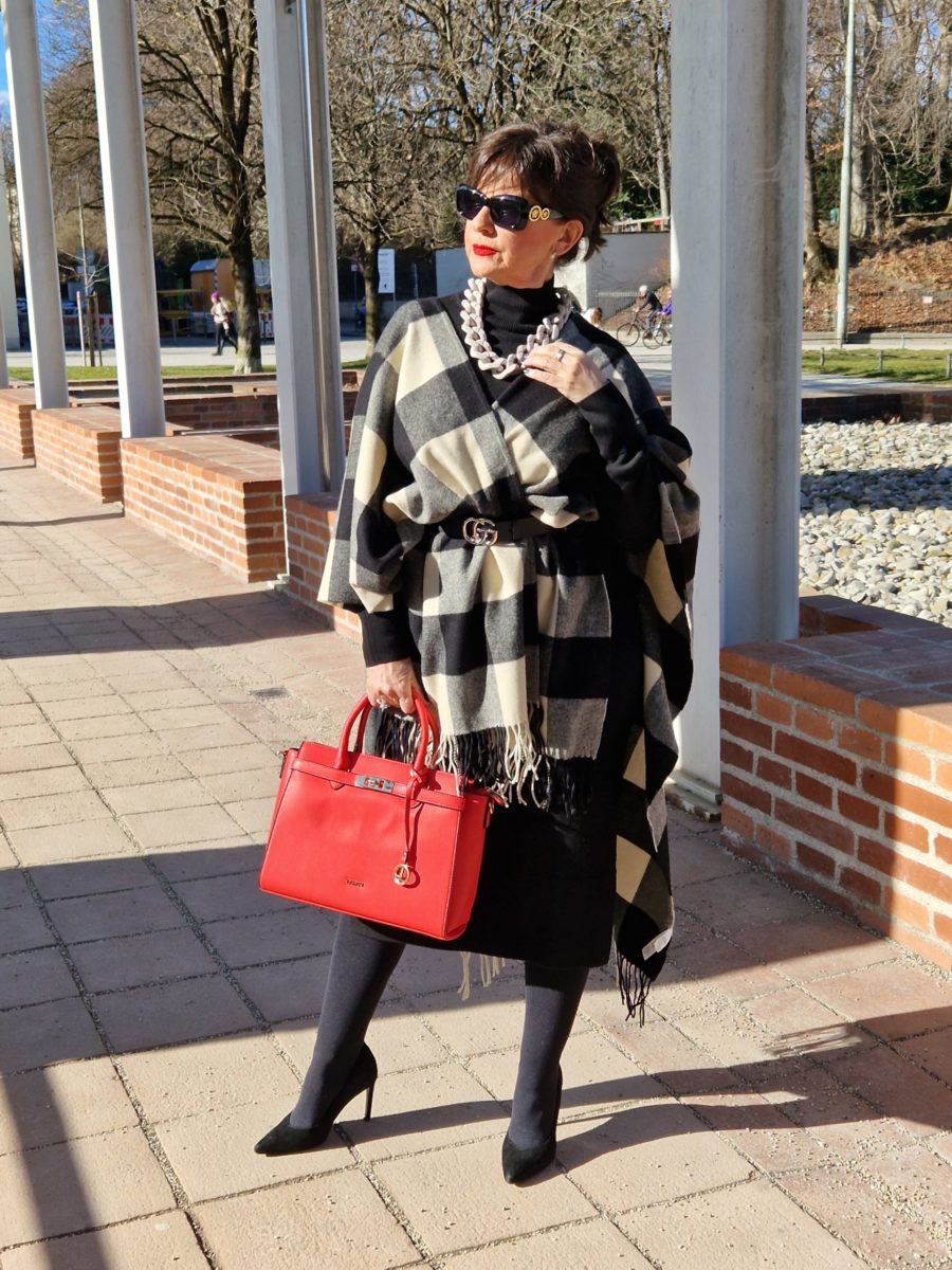 Ein kuscheliges Cape ist eine Alternative, für jede Dame, die es eilig hat. Schnell ins Auto springen, Kinder abholen, zum Einkaufen gehen oder von zu Hause ins Office. Ich werfe mir gerne einen Poncho oder Cape über das Kleid, wenn ich weiß, dass ich mich mehr im Innenbereich bewegen werde, als im Freien.