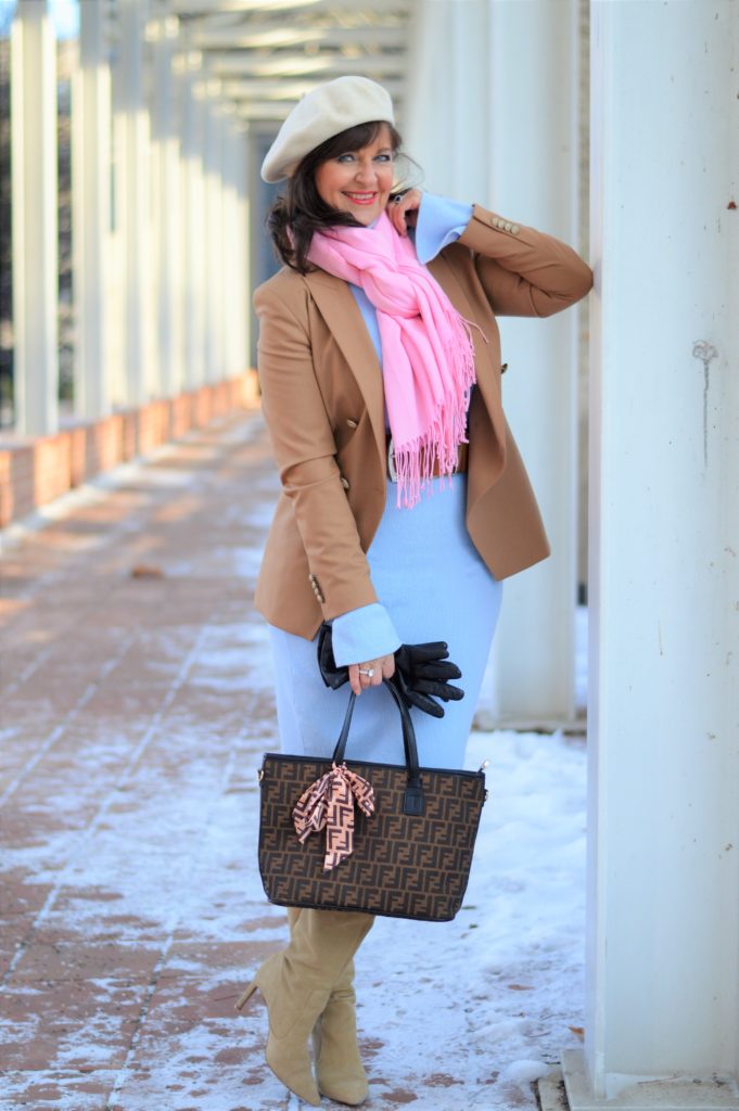 Oh – wie schön – das hellblaue Kleid, eines meiner Lieblingskleider in Sachen Strickkleid. Ich kombiniere es immer wieder anders, vor allem andere Schuhe/Stiefel lassen es immer wieder besonders wirken.